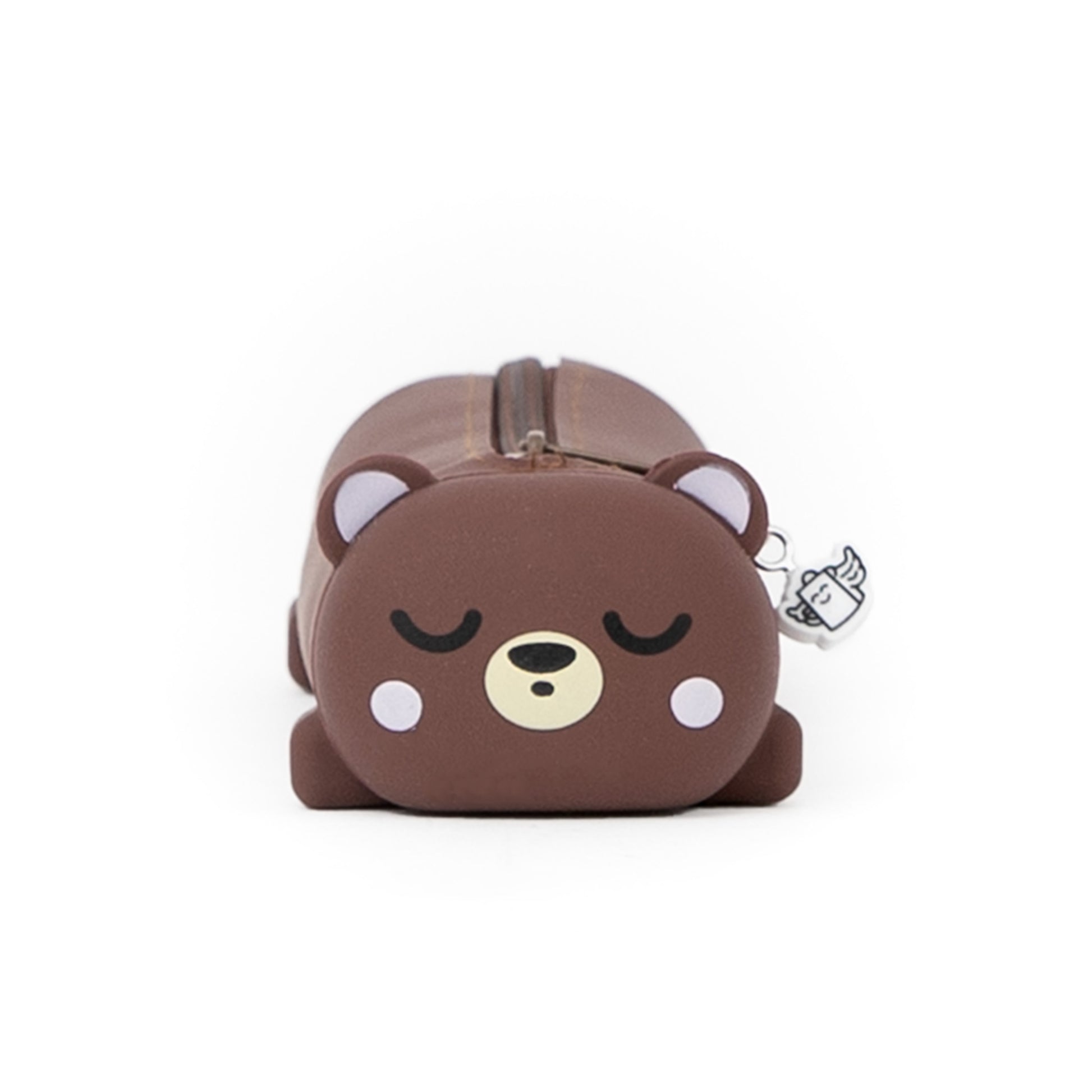 Estuche escolar con cierre de cremallera y con forma de osito, realizado en silicona.