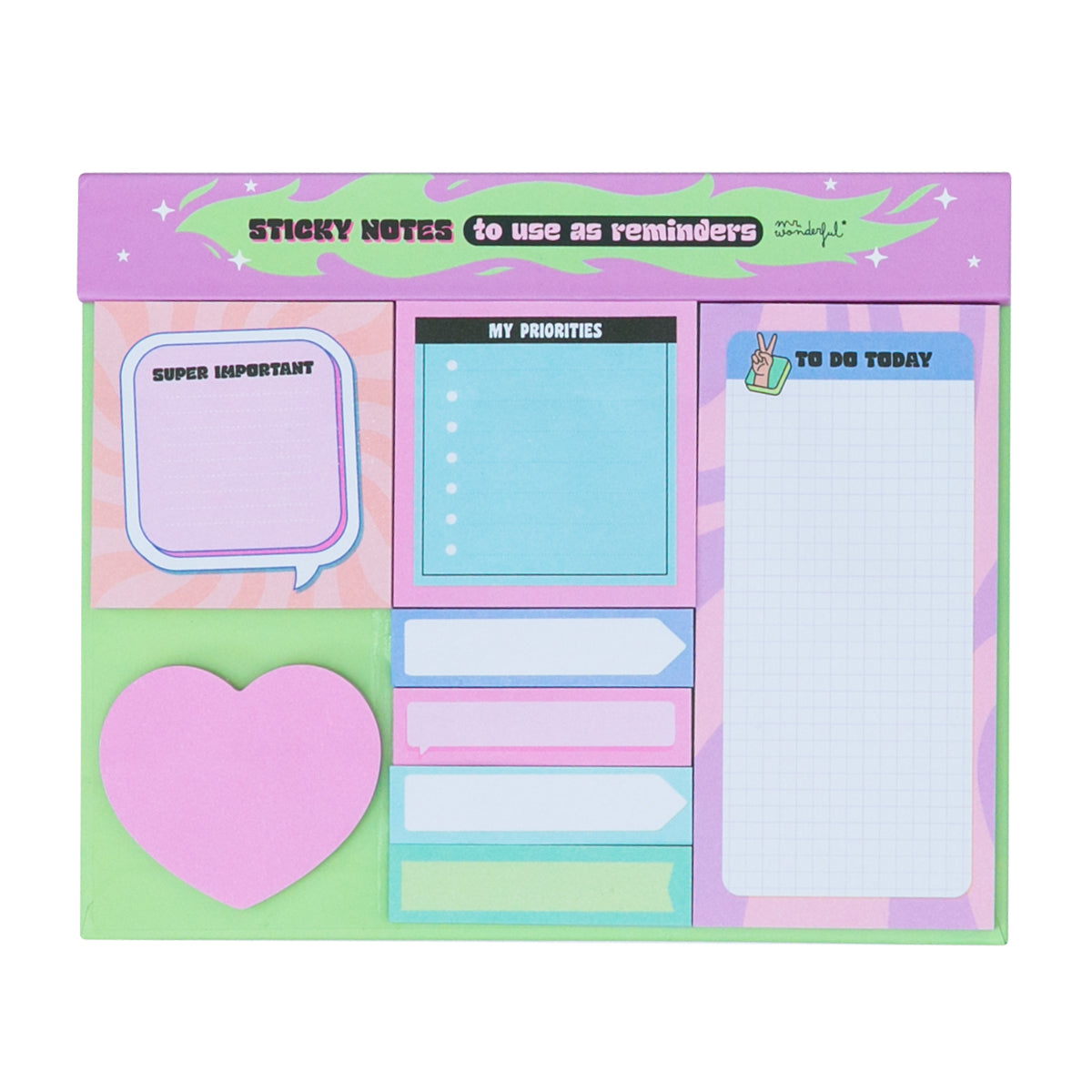 Set de blocs de notas adhesivas de diferentes formas, con 50 notas adhesivas en cada bloc, de papel de 80 gr. Cuenta con la certificación FSC, que garantiza que han sido fabricados con papel obtenido de bosques gestionados de forma responsable.