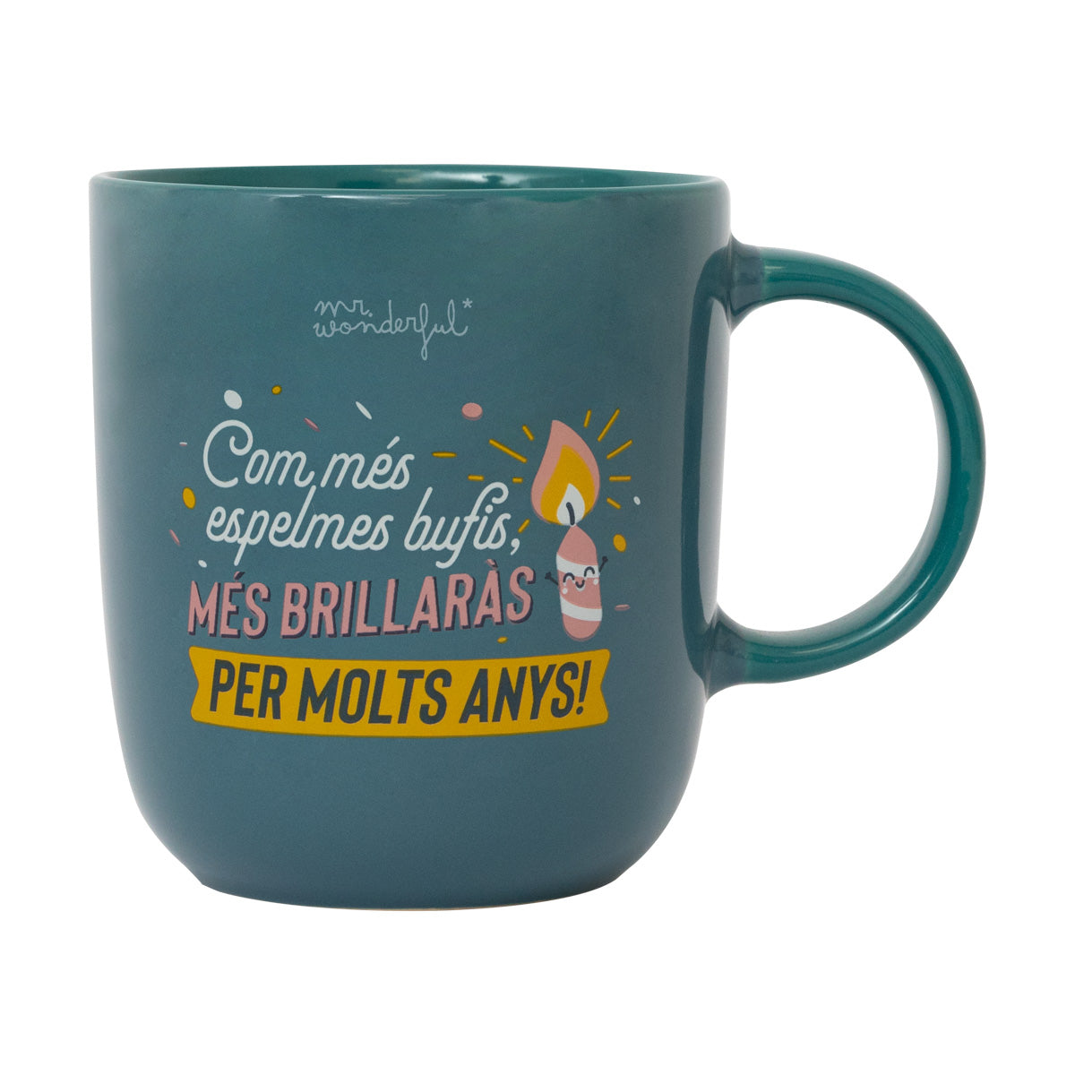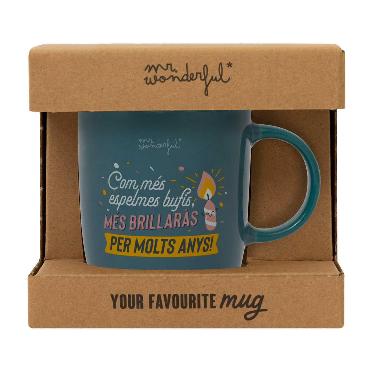 Tassa de ceràmica amb disseny Mr. Wonderful i missatge d'aniversari. Capacitat: 370 ml