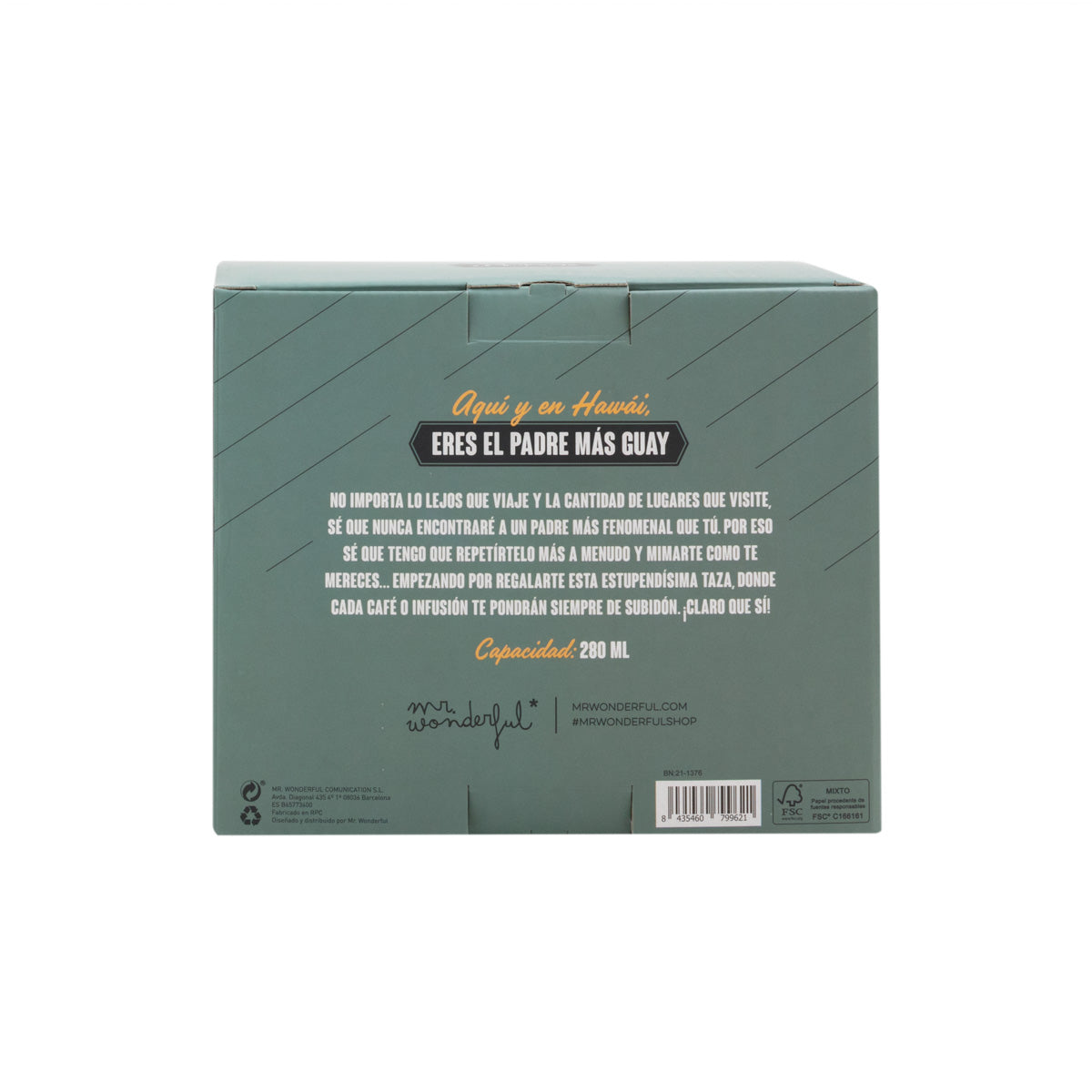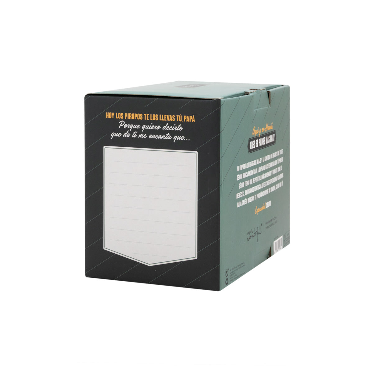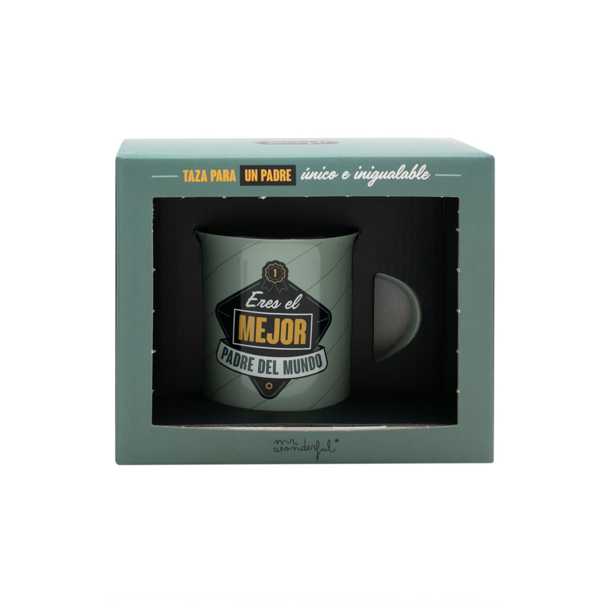 ¿Cuántas veces le has dicho a tu padre lo genial que es? Seguro que unas cuantas, pero... ¿es suficiente? En Mr. Wonderful pensamos que no, porque nunca está de más regalar una buena dosis de amor del bueno y cariño sincero. Por eso, nuestra colección de regalos para padres de todos los tipos y edades siempre incluye mensajes emotivos y divertidos con los que volver a decírselo una y mil veces. Así, en esta colección nunca falta el clásico entre los clásicos... Sí, lo has adivinado: nos referimos a una de nuestras estupendísimas tazas con mensaje. En este caso, una taza Mr. Wonderful elaborada en cerámica y que cuenta con una capacidad de 280 ml para poder saborear desayunos, meriendas y todo lo que tu padre quiera y siempre siempre a su manera. Además, es apta tanto para calentarla en el microondas como para limpiarla en el lavavajillas y está decorada con una bonita frase que dice “Eres el mejor padre del mundo”. ¡Claro que sí! Y para completar este pedazo de regalo hemos colocado una sorpresita en su caja: un espacio en la parte trasera donde encontrarás un texto personalizable que podrás rellenar para dedicárselo a tu padre. Genial, ¿no? ¡Pues no te quedes sin tu taza para el Día del Padre!