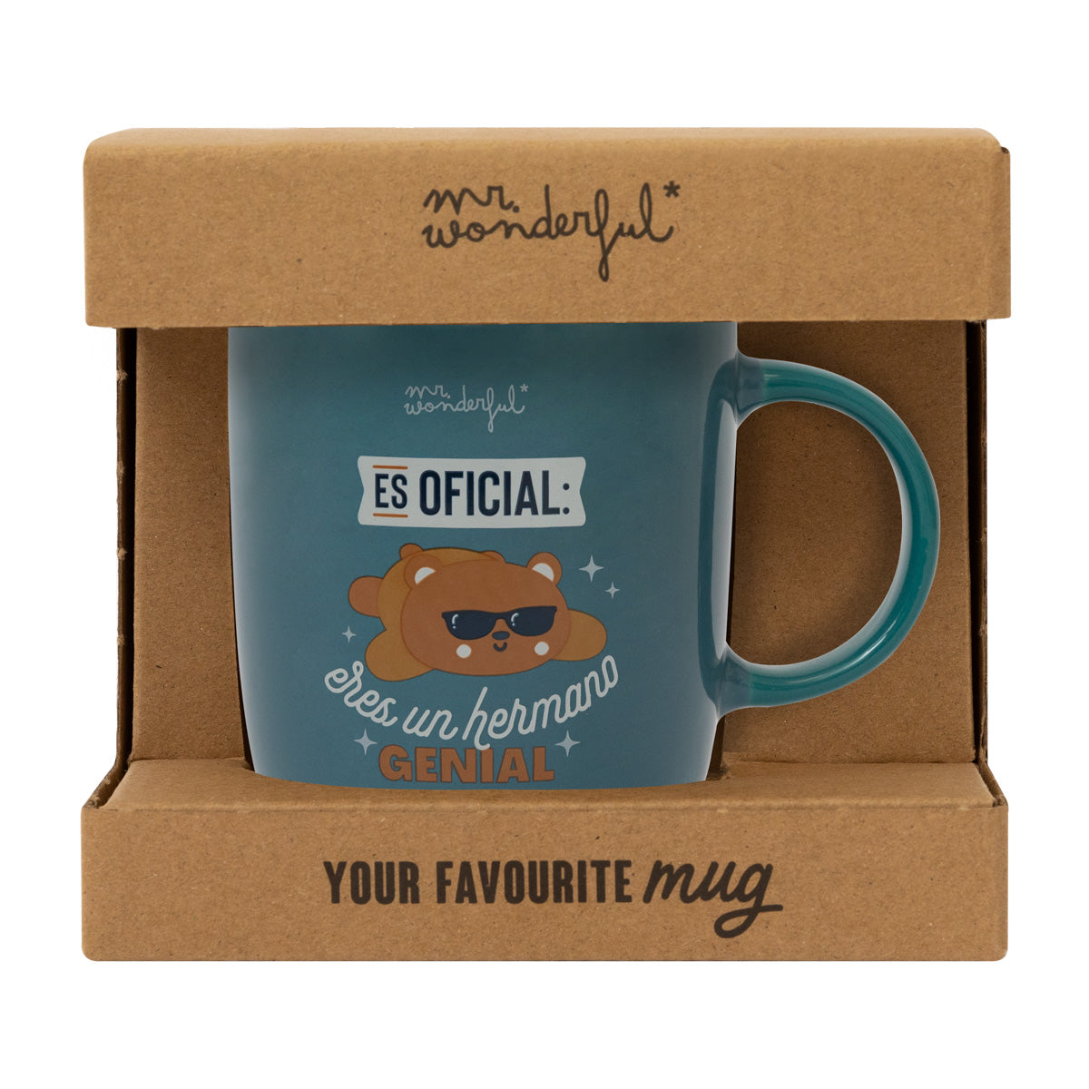 Taza de cerámica con diseño Mr. Wonderful y mensaje dirigido a hermanos. Capacidad: 370 ml
