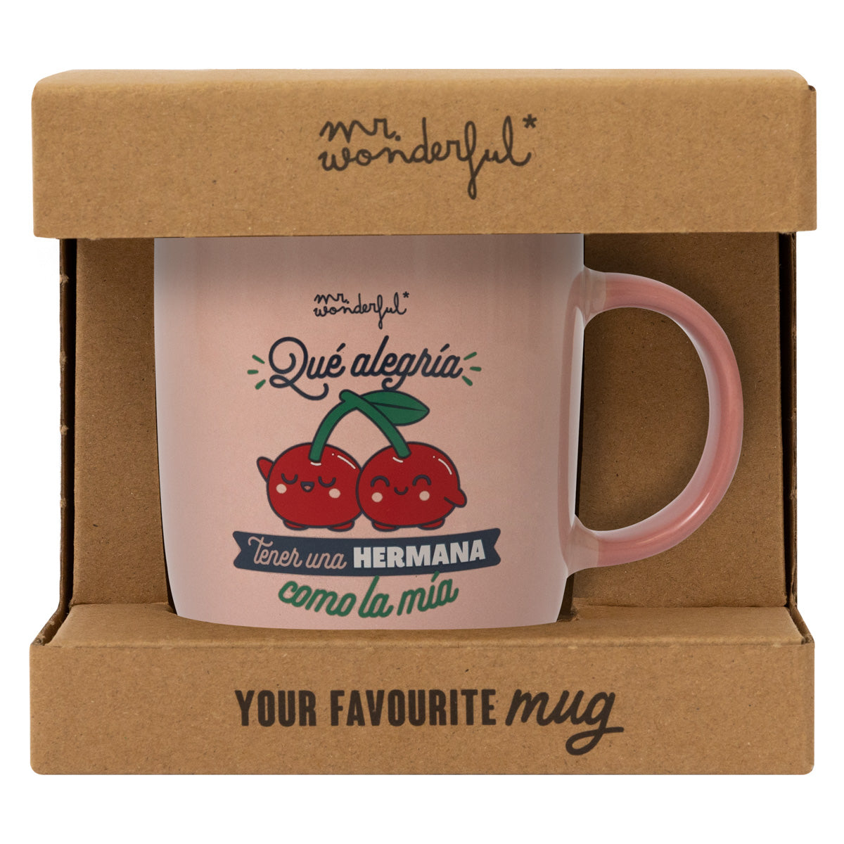 Recuérdale a tu hermana lo especial que es y cuantísimo la quieres regalándole esta bonita taza Mr. Wonderful.