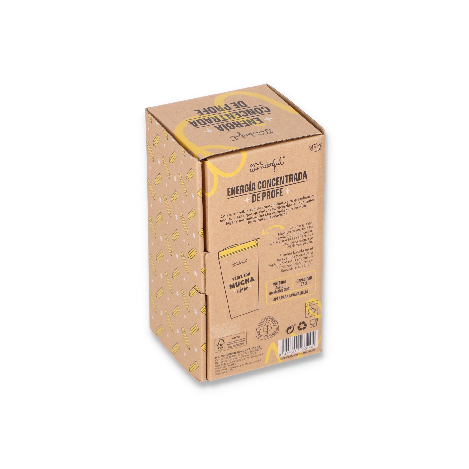 Con un divertido mensaje impreso en ella, dirigido a profesores o profesoras.