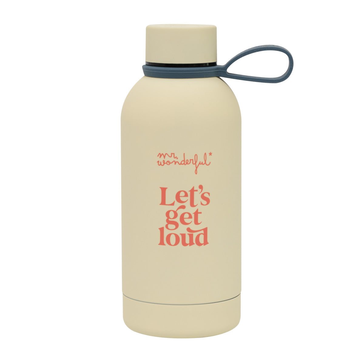 Botella térmica realizada en?acero inoxidable 304 de doble capa. Aguanta las?bebidas frías hasta un?máximo de?24 horas y?calientes hasta 12 horas. Con cierre hermético, inodora y?ligera. Libre de?BPA. Su tapón incorpora una?cuerda, lo que?la?hace más fácil de?transportar. Cuenta con?un?mensaje divertido impreso en?ella. Capacidad: 350 ml.
