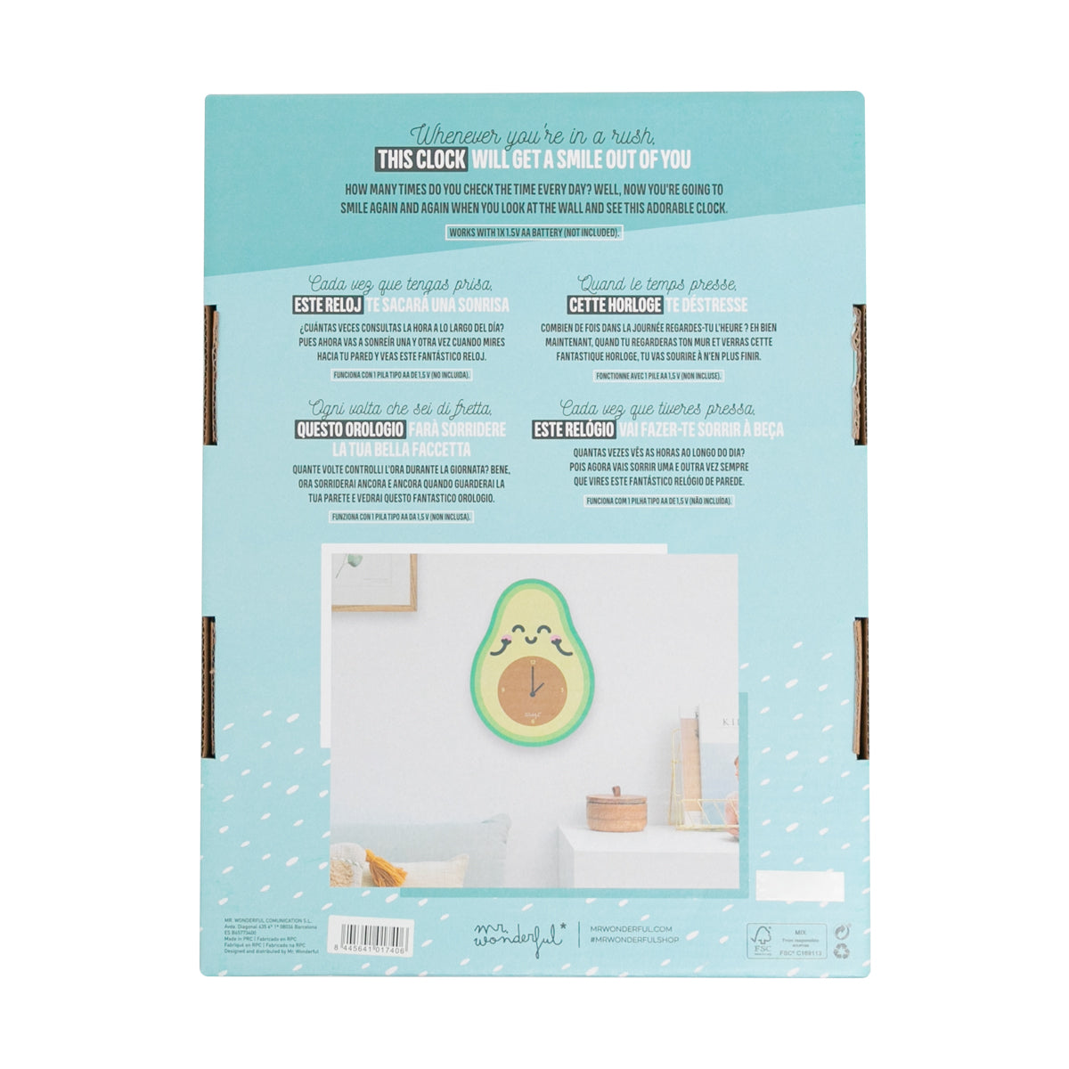 Reloj de pared decorativo con forma de aguacate Mr. Wonderful. Es muy fácil de colgar y su mecanismo es de cuarzo. Funciona con 1 pila AA de 1.5 V (no incluida).