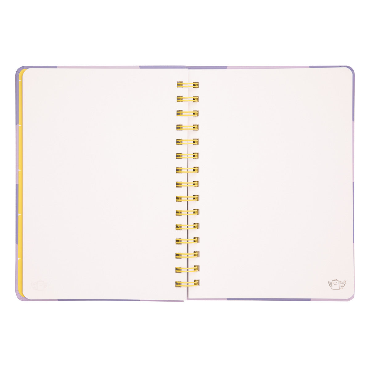 Caderno espiral tamanho A5 com um arco-íris em relevo na capa. Dentro encontramos 160 páginas em branco. Inclui 1 folha de adesivos. É certificado pelo FSC, o que garante que foi fabricado com papel proveniente de florestas manejadas de forma responsável.