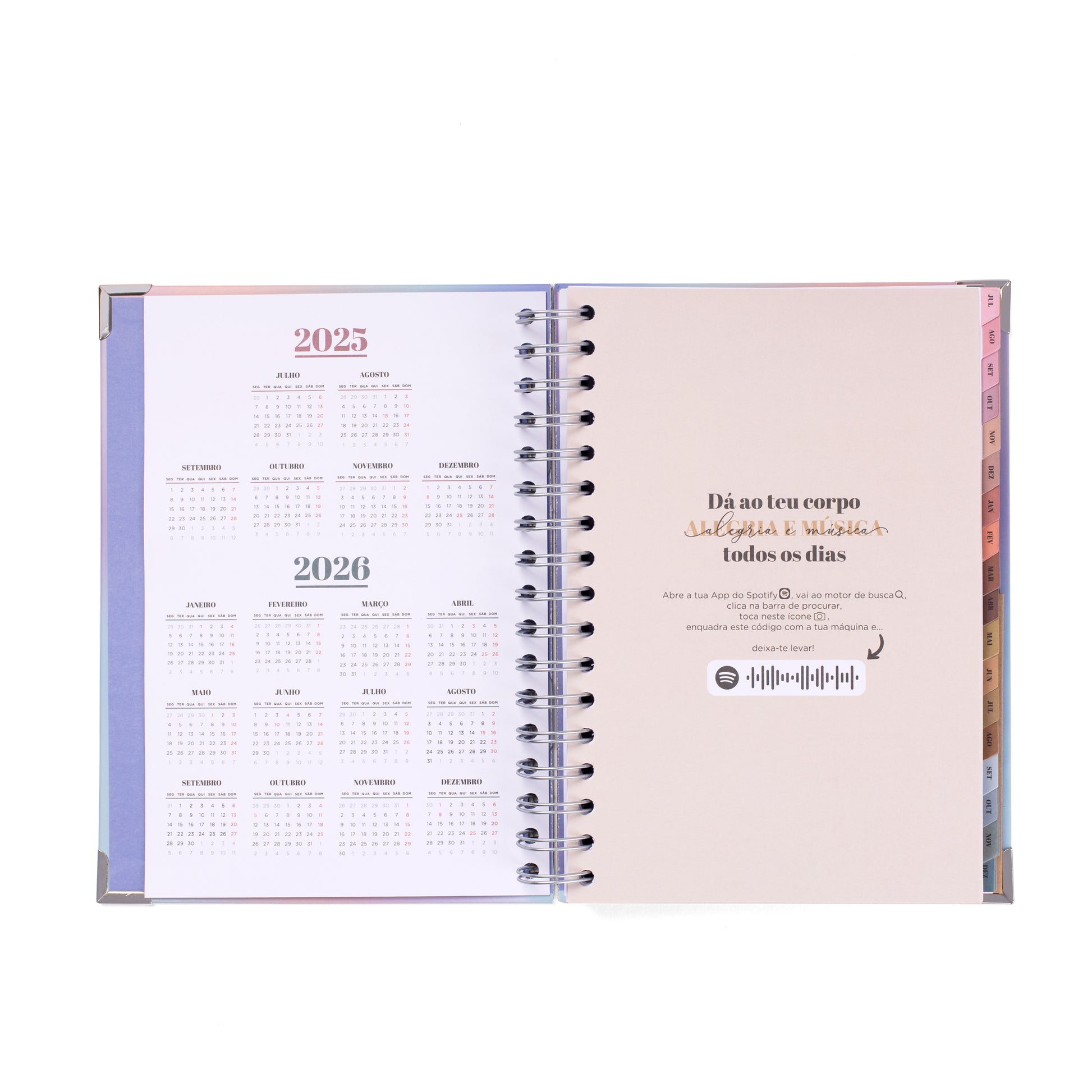 Agenda ao estilo "O Escritório do Sr. Maravilhoso", um novo design que apresentamos em algumas edições, um pouco mais sóbrio e com o nosso estilo mais clássico, que agradará a um público mais vasto. Esta agenda tem 18 meses de organização: de julho de 2025 a dezembro de 2026, com organização semanal. Esta agenda contém: