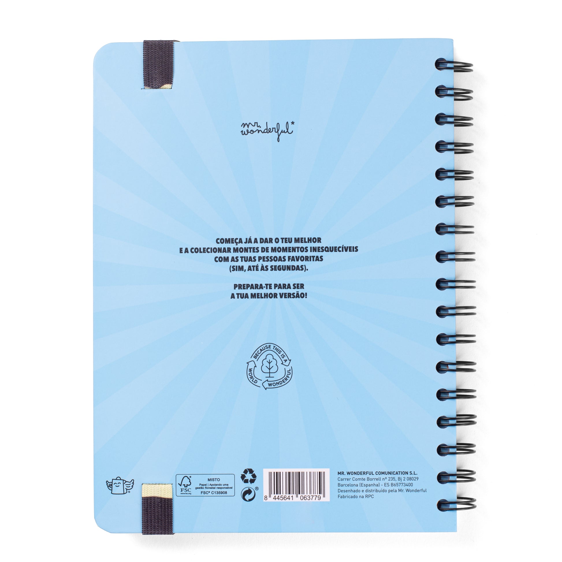 A agenda estilo Wonder do Sr. Wonderful, com organização semanal, decorre de setembro de 2025 até ao final de agosto de 2026. Esta agenda contém: