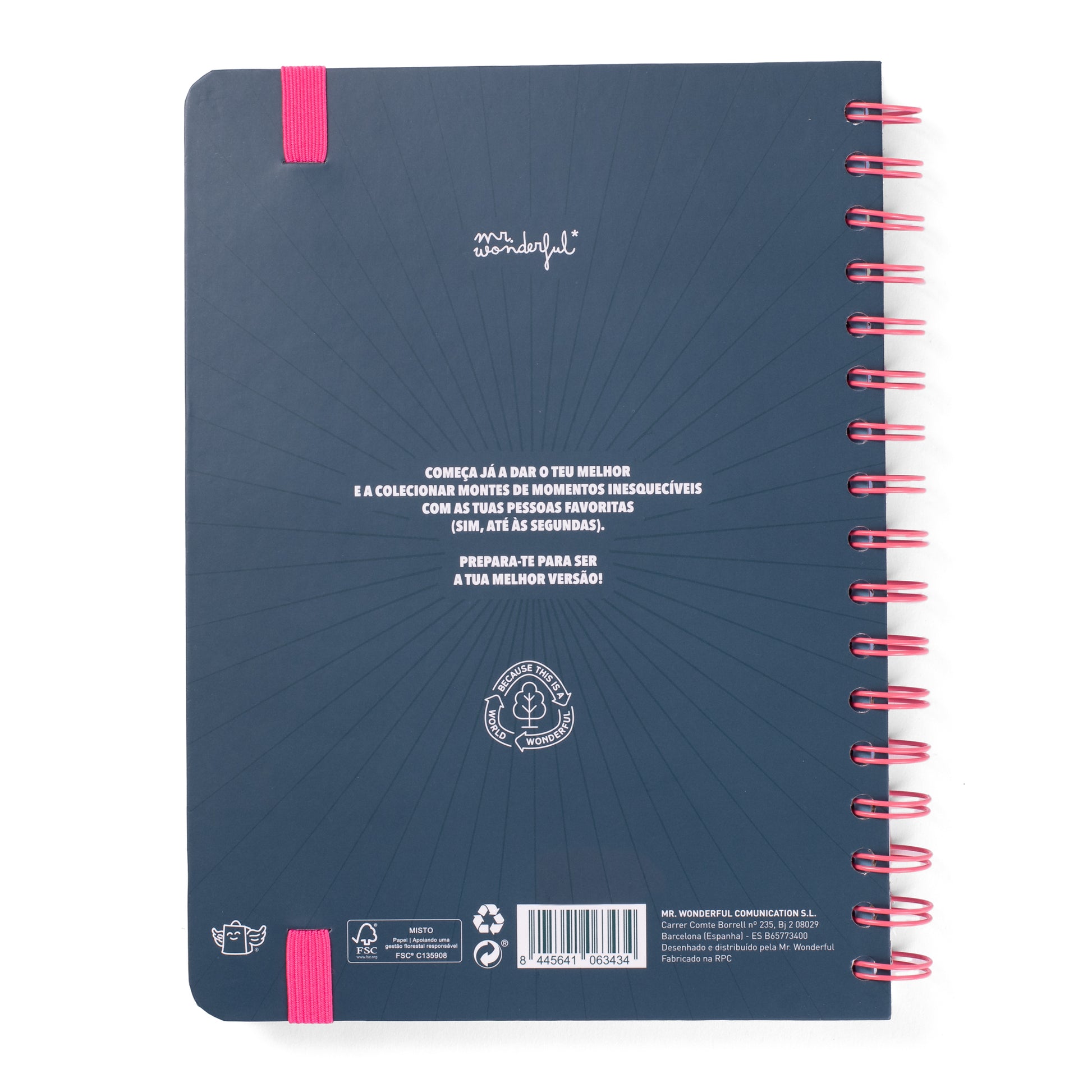 A agenda estilo Wonder do Sr. Wonderful, com organização semanal, decorre de setembro de 2025 até ao final de agosto de 2026. Esta agenda contém: