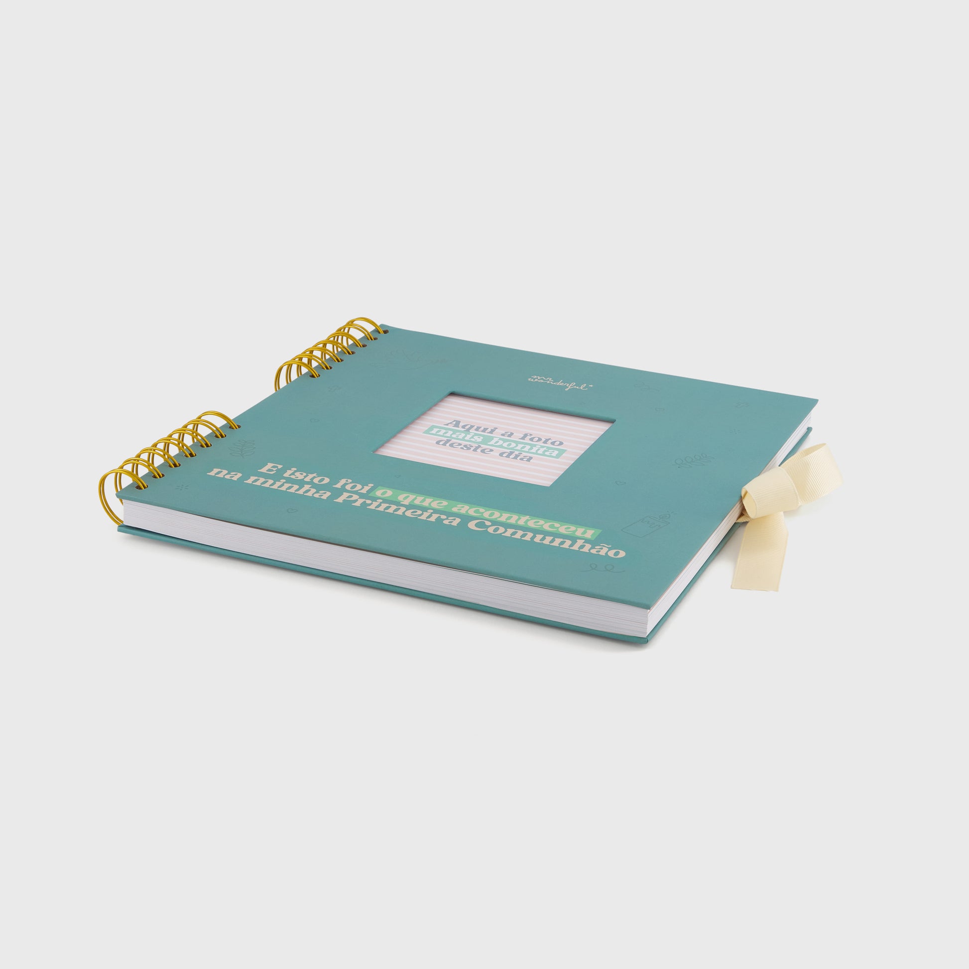 Álbum para organizar e salvar as fotos da primeira comunidade. Com uma corrente em espiral, o álbum é datado com um laço, o que confere originalidade. Ainda, em sua camada rígida, encontramos um espaço de 9x9 cm, destinado a colocar uma foto do protagonista daquele dia.