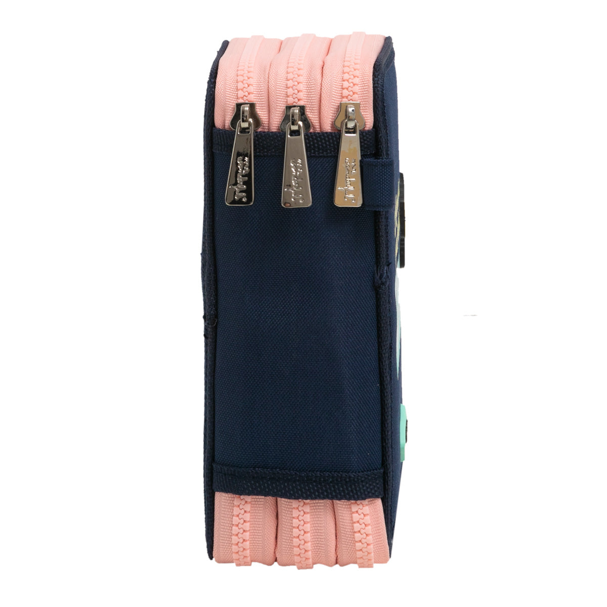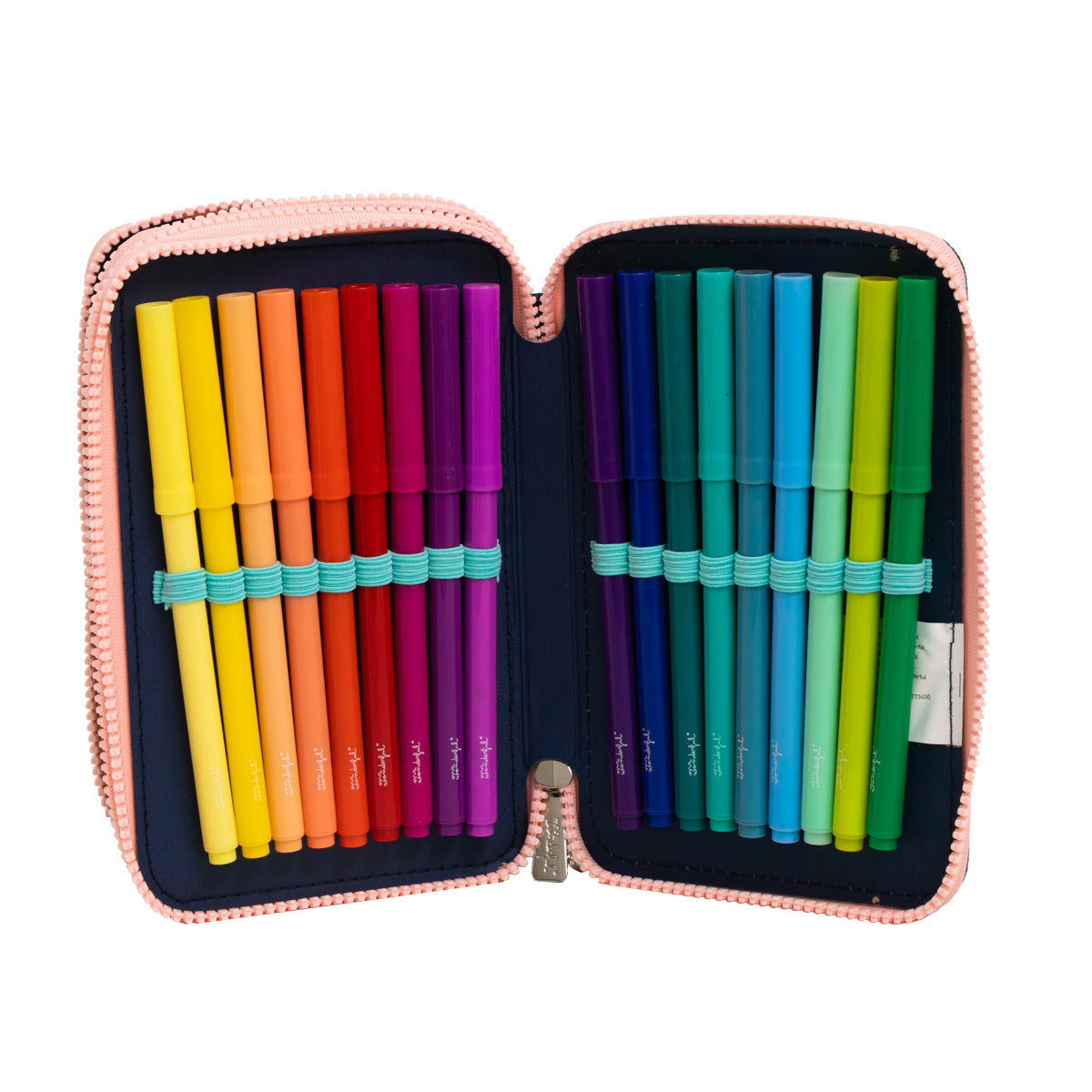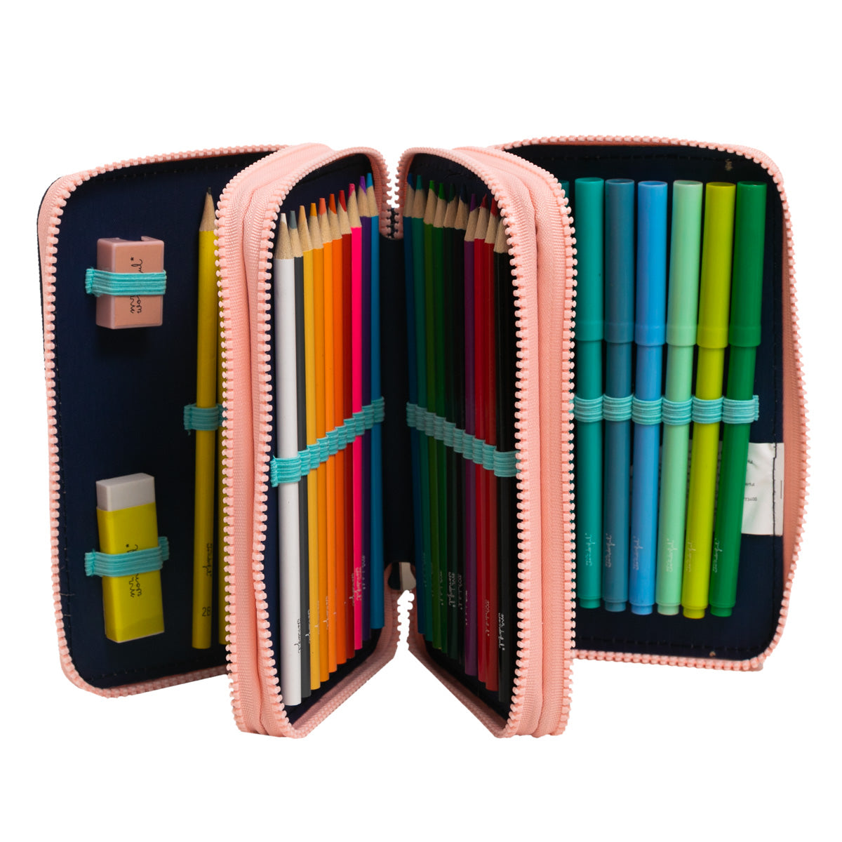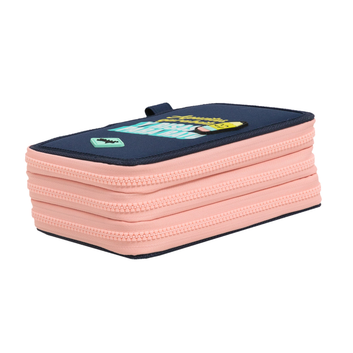 Astuccio com três singoli compartilhados e chiusura um zip. Feito em rPET, um material 100% reciclável obtido a partir da reciclagem de garrafas plásticas.
