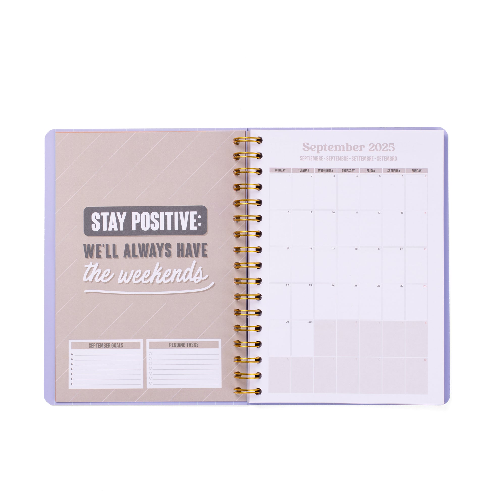 Um planner semanal simples e básico, com menos extras do que outros planners Mr. Wonderful. Este planner vai de setembro de 2025 a agosto de 2026 e é uma solução mais económica para organizar o seu ano. Embora a capa seja em inglês, o interior está disponível em todos os idiomas (inglês, espanhol, francês, italiano e português). Inclui: