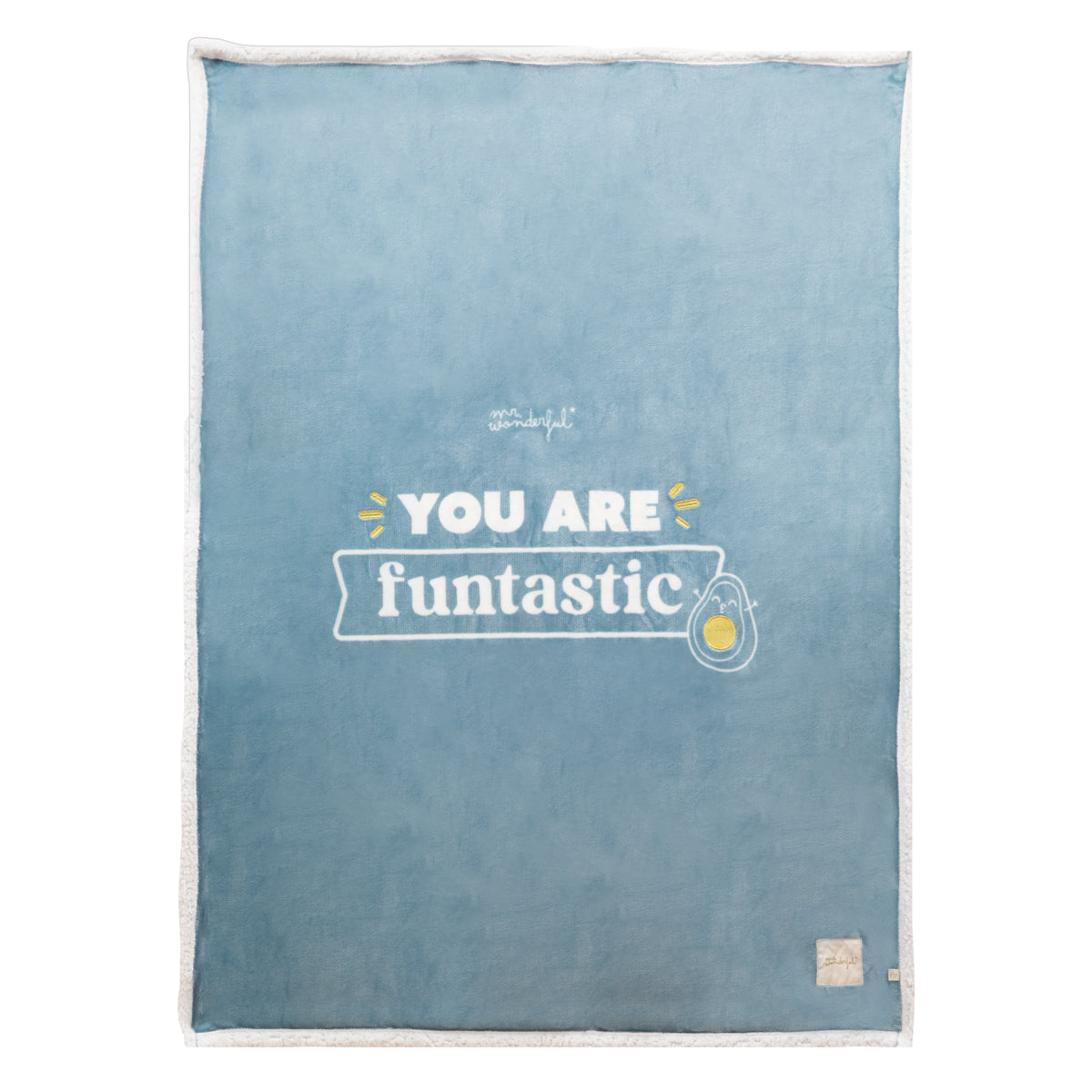 Manta confeccionada em flanela 240g, tipo polar, com toque muito macio. Apresenta uma mensagem impressa no cobertor e uma capa. Tamanho do cobertor desdobrado: 130 x 170 cm. Tamanho da capa: 35 x 41 cm.