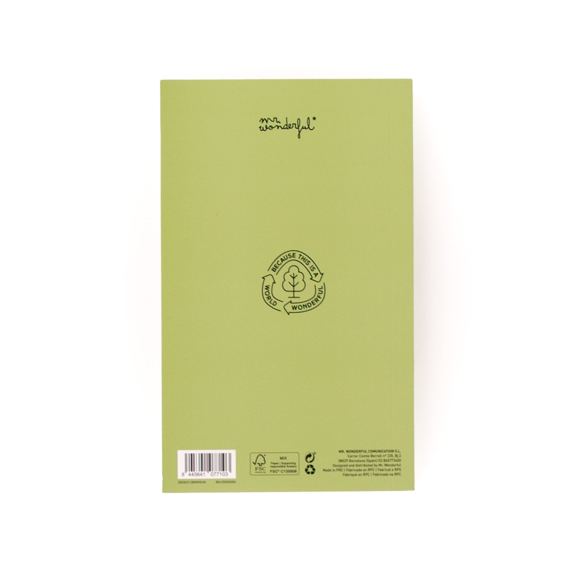 Com 120 folhas brancas de 100gsm com certificação FSC, que garante que o papel provém de florestas geridas de forma responsável.