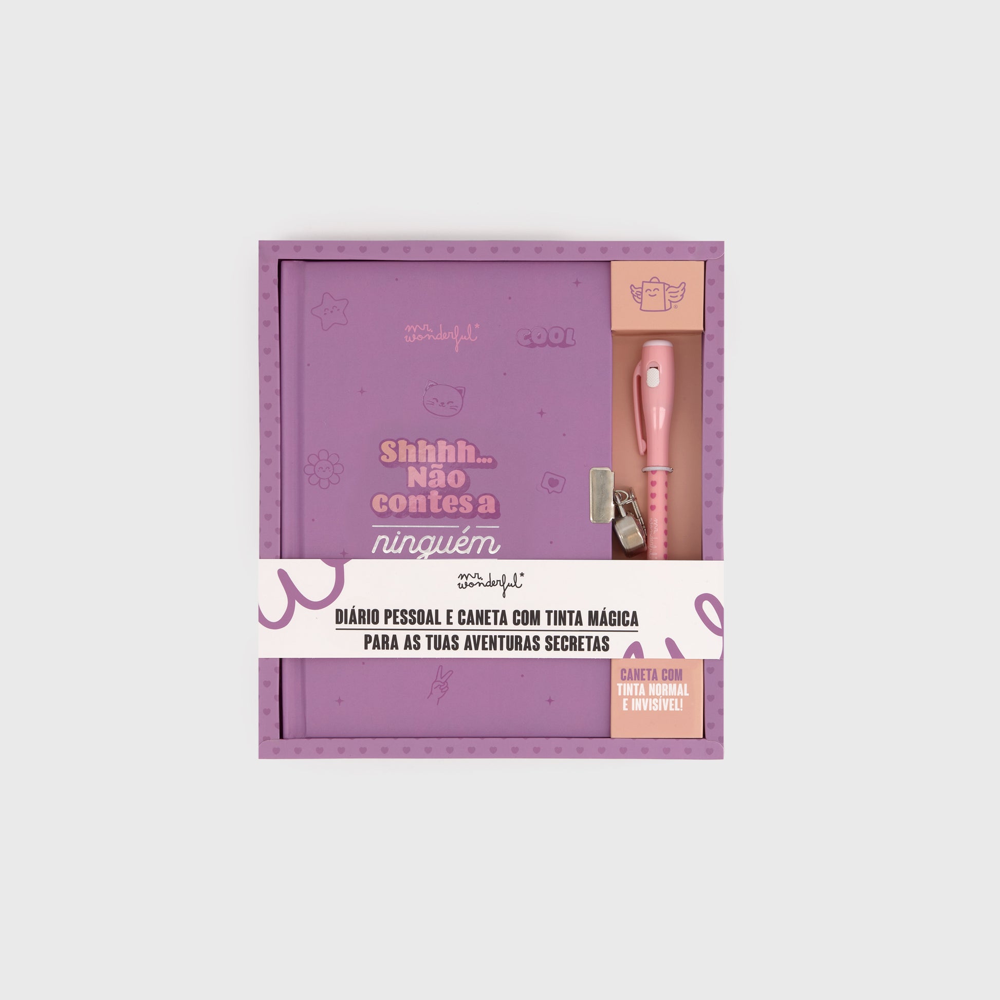 Diário pessoal + Caneta com tinta normal e invisível - Shhhh… não responda a ninguém