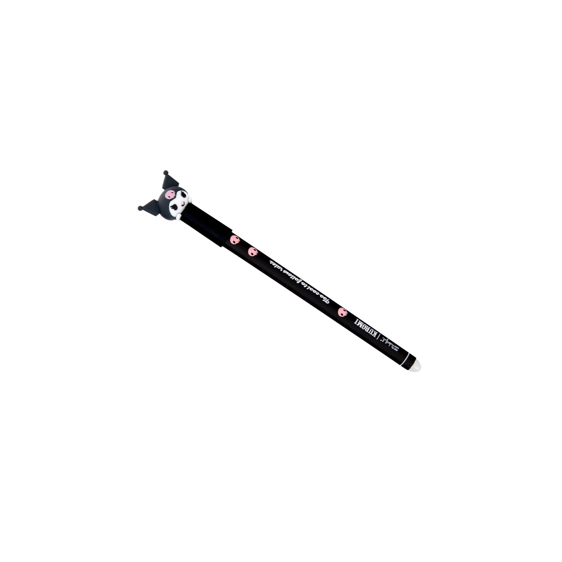 Boli con tinta borrable de color negro y Kuromi, la amiga más rebelde de Hello Kitty, en uno de sus extremos. Mensaje del bolígrafo: