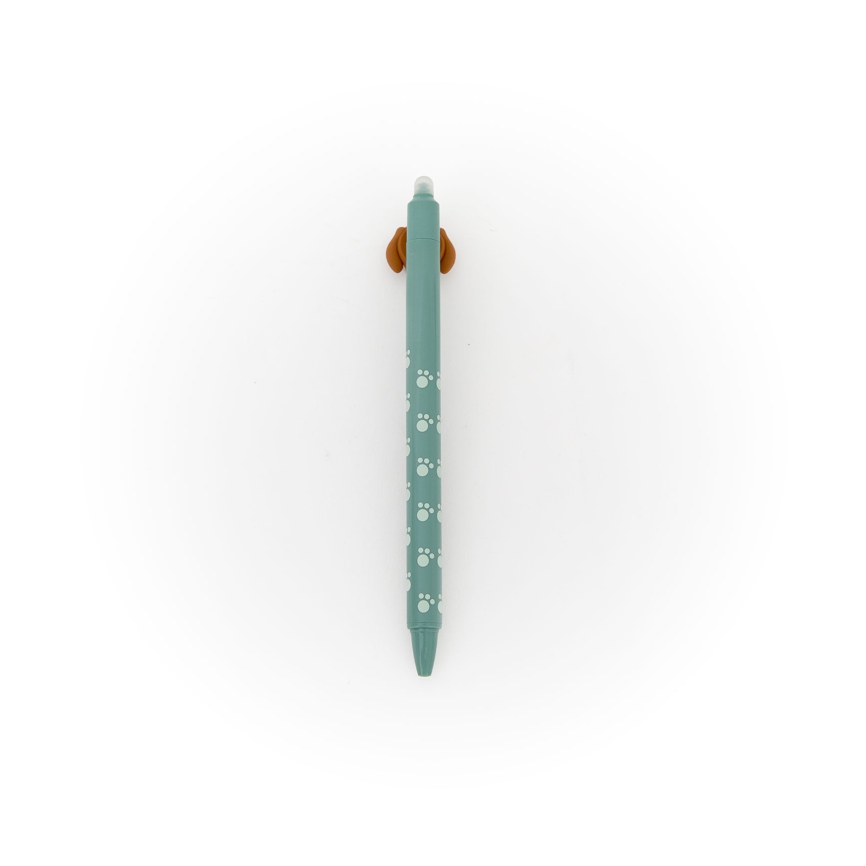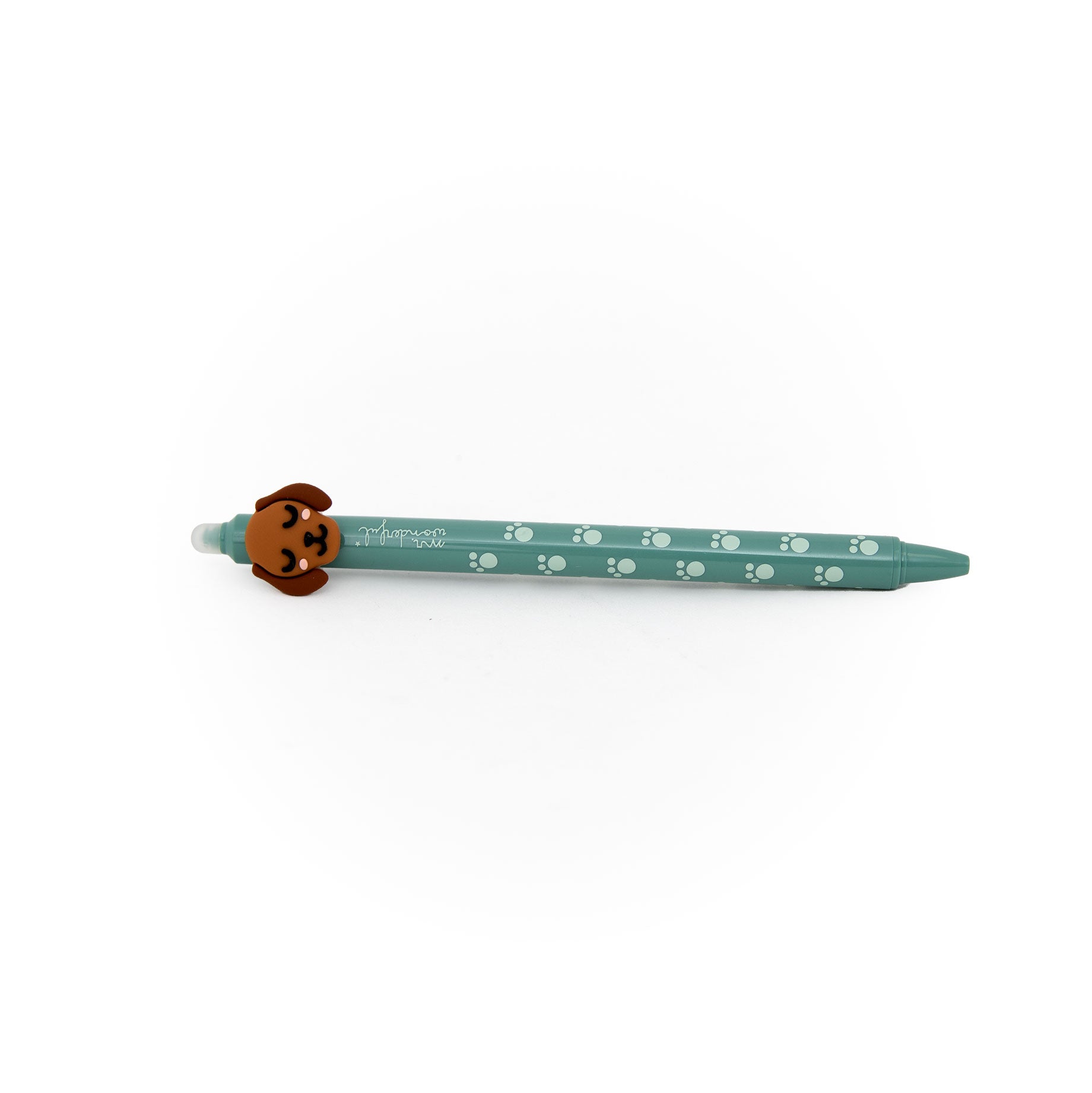 Boli con un personaje Mr. Wonderful en el lateral y tinta borrable de color azul, que solo se borrará con la goma específica que incluye el bolígrafo. De otra forma, es permanente.