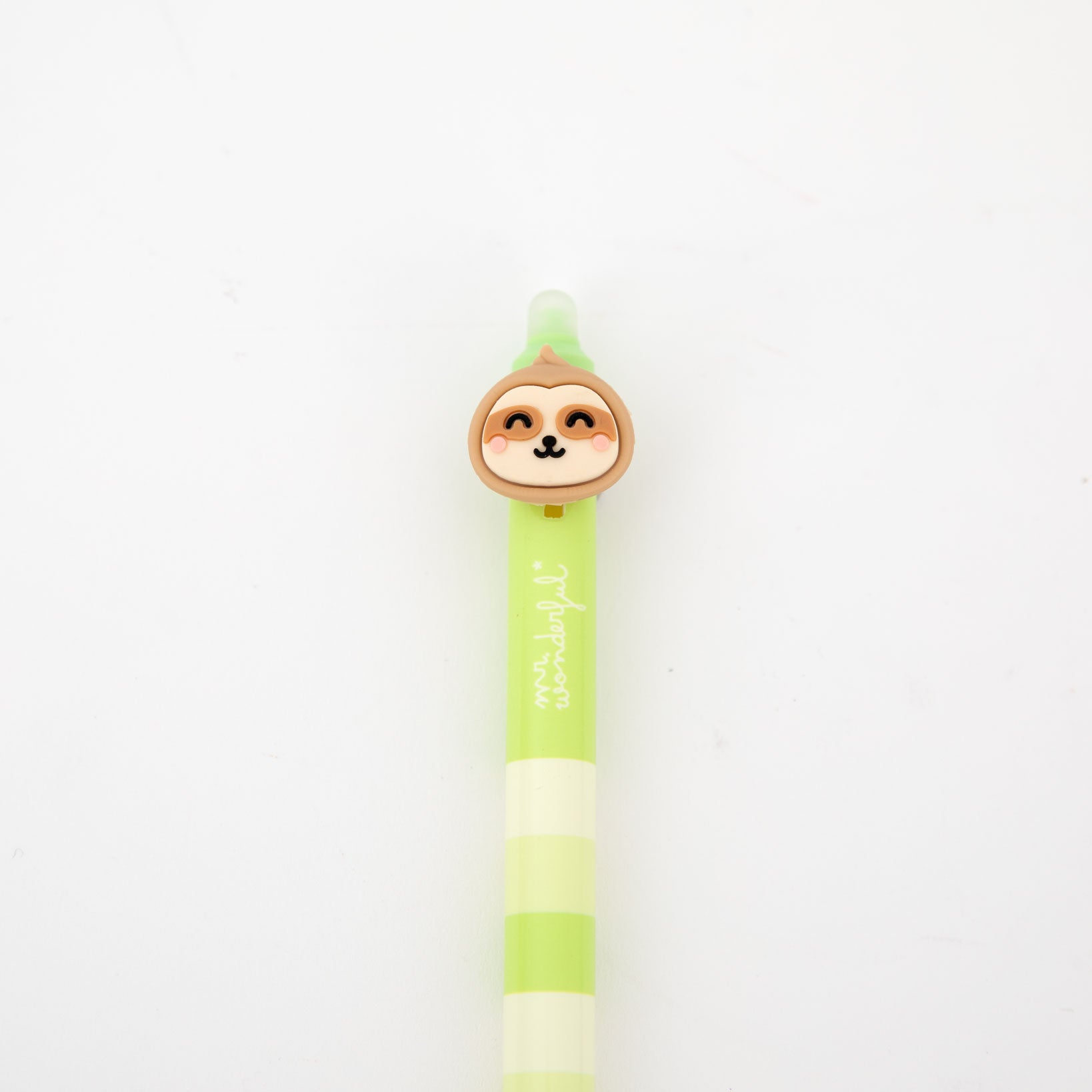 Boli con un personaje Mr. Wonderful en el lateral y tinta borrable de color azul, que solo se borrará con la goma específica que incluye el bolígrafo. De otra forma, es permanente.
