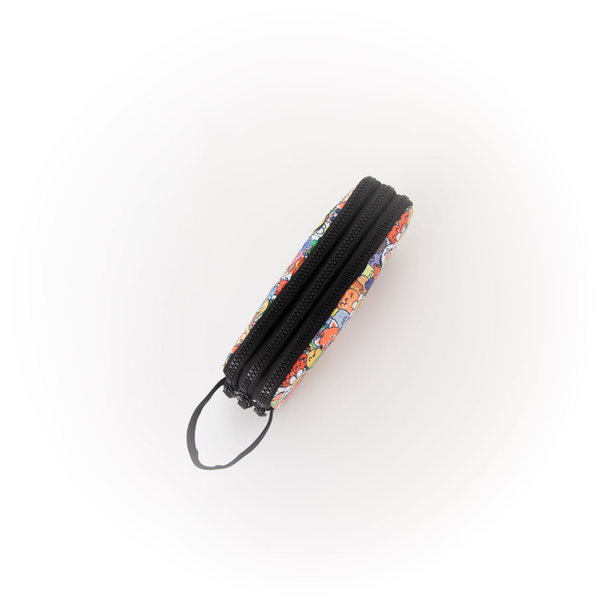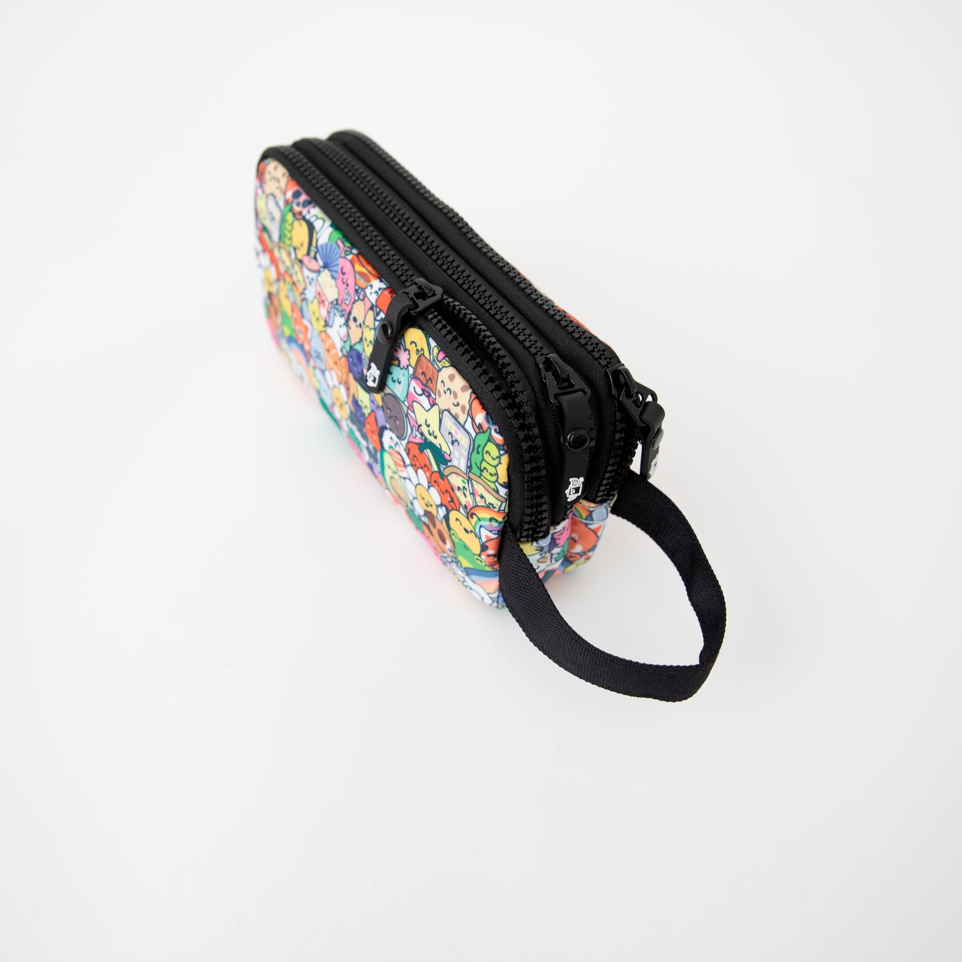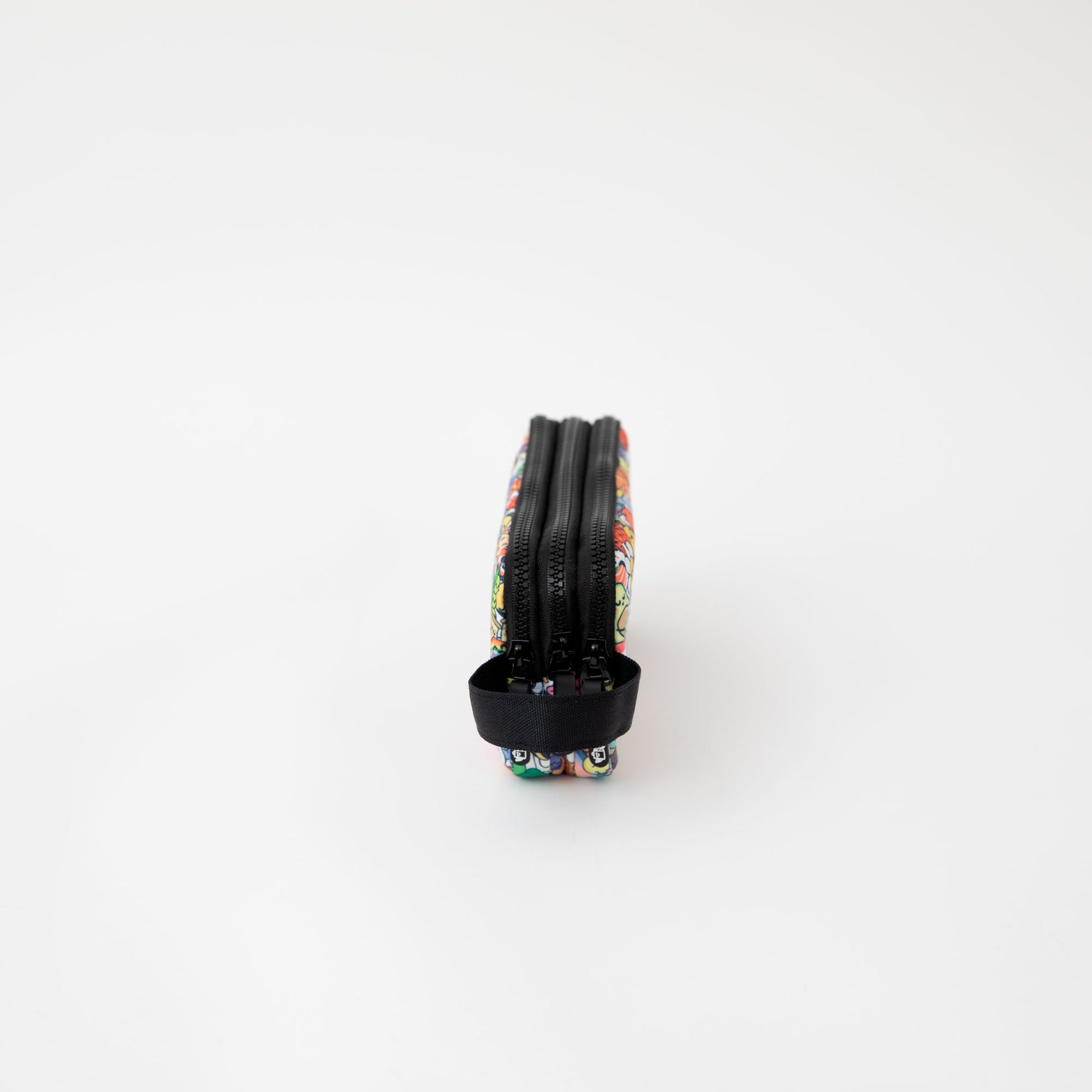 Estojo com três compartimentos individuais e fechamento em zíper. Feito de rPET, um material 100% reciclável obtido a partir da reciclagem de garrafas plásticas.