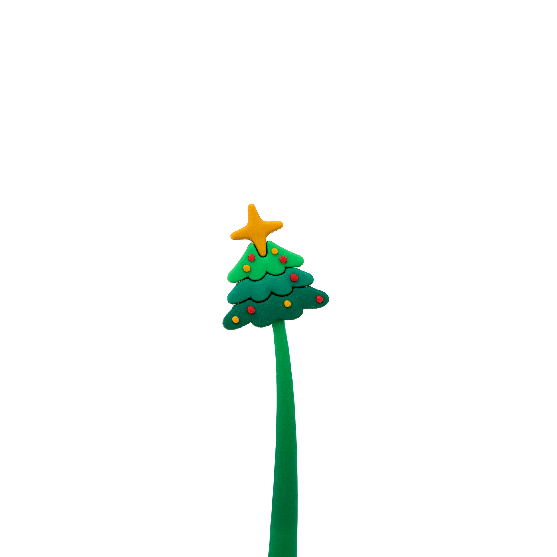 Bolígrafo de cuerpo blando y flexible, con un árbol de Navidad en su extremo.