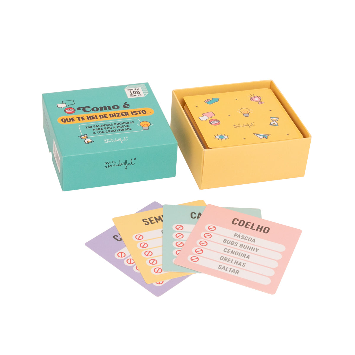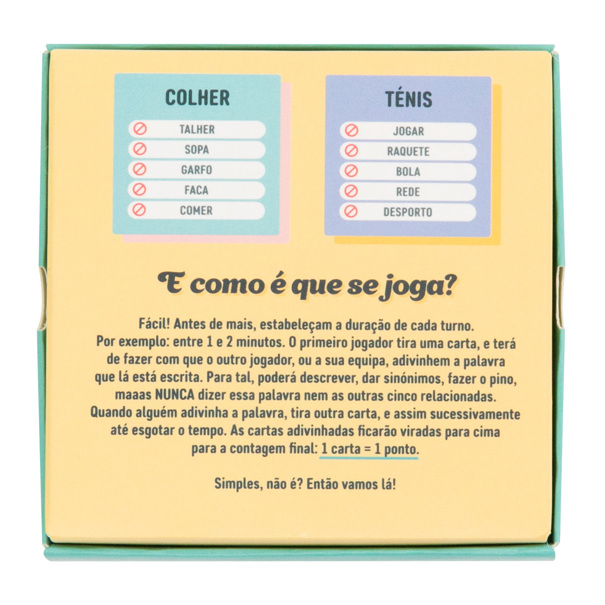 Jogo de cartas perfeito para jogar com amigos ou família. É composto por 100 cartas e em cada uma delas há uma palavra que temos que adivinhar e cinco relacionadas àquele tema. Essas cinco palavras não podem ser usadas na descrição, pois tornam a tarefa mais difícil e o jogo mais divertido.