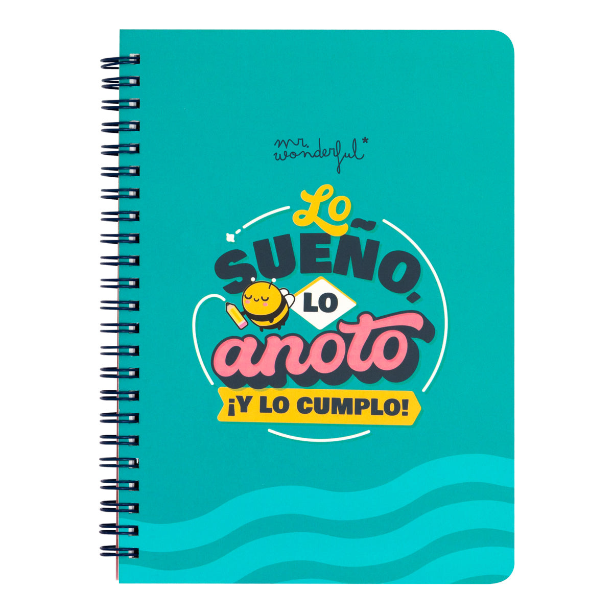 Caderno A5 com encadernação espiral, capa dura e 80 folhas quadradas de papel de 80 g/m². dentro. Inclui uma folha de adesivos.