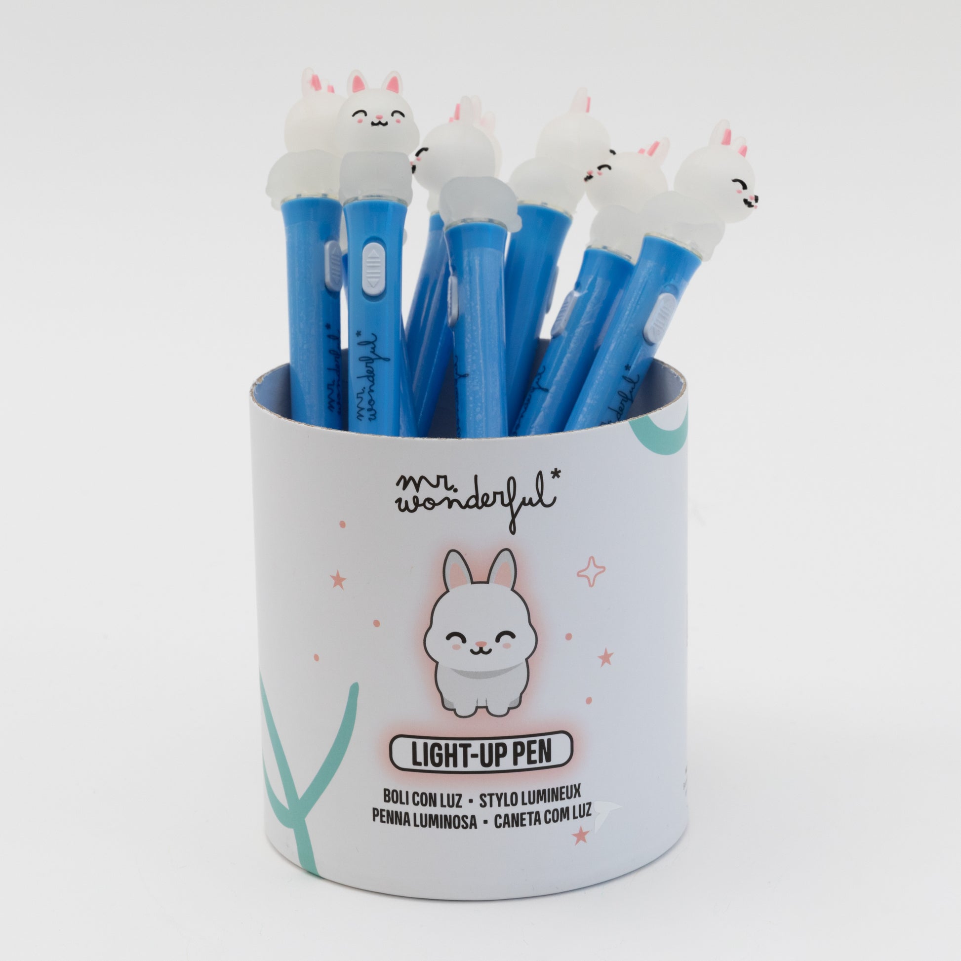 Caneta com uma pequena luz, incorpora um coelho Mr. Wonderful em sua