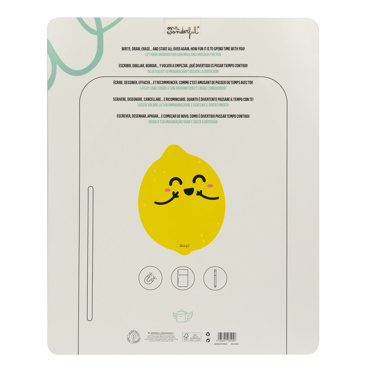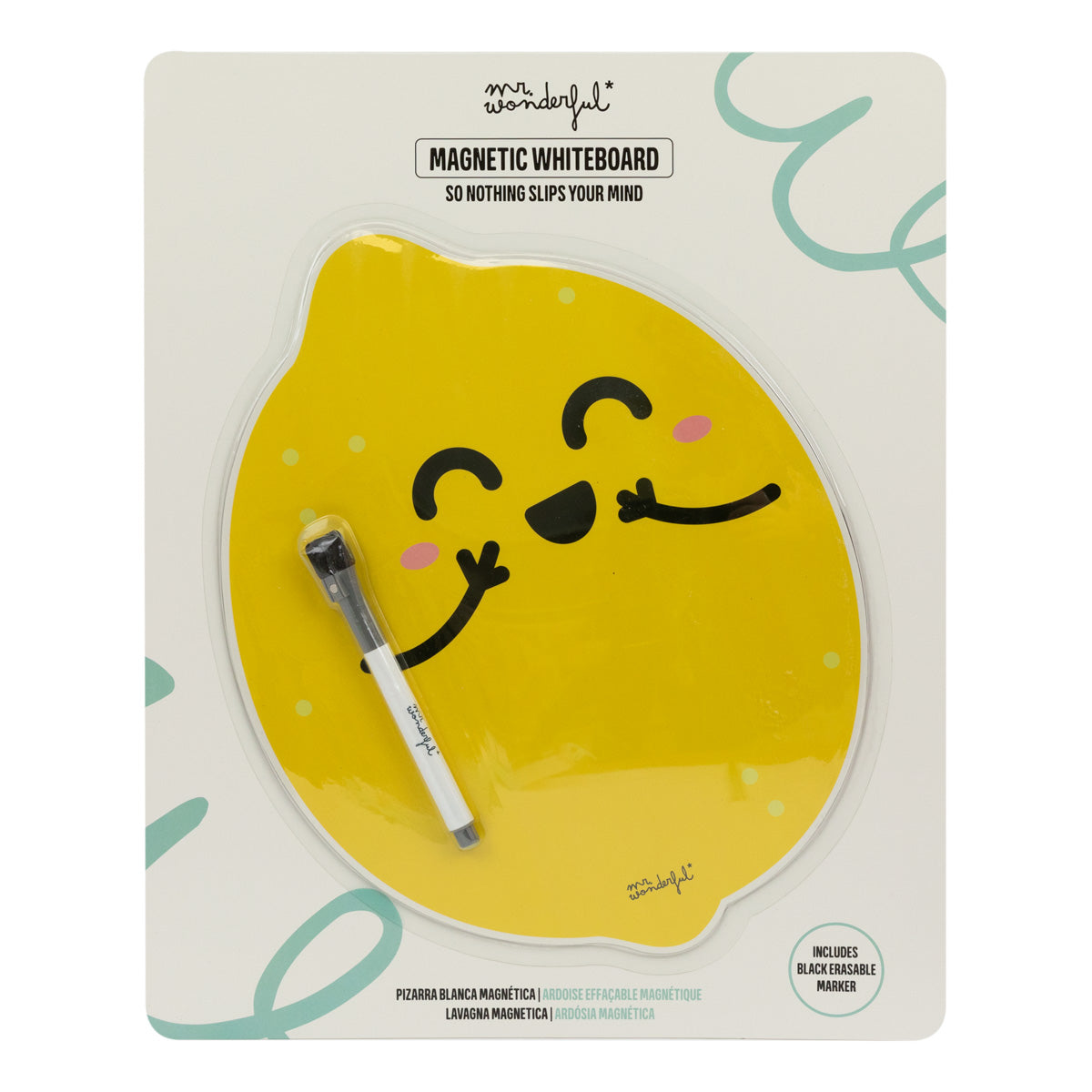 Quadro branco magnético e apagável no formato do nosso divertido limão Mr. Wonderful.