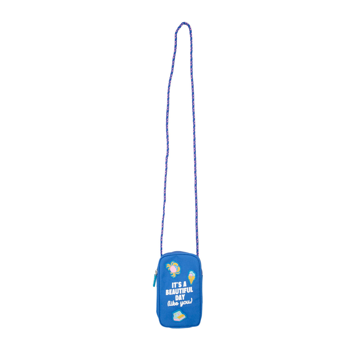 Uma pequena bolsa de poliéster para celular, ideal para carregar seu telefone ou outros itens pequenos. Apresenta um lindo design, incluindo adesivos decorativos coloridos e divertidos na frente. Além de possuir fecho em zíper, possui corda para pendurar, com comprimento ajustável.