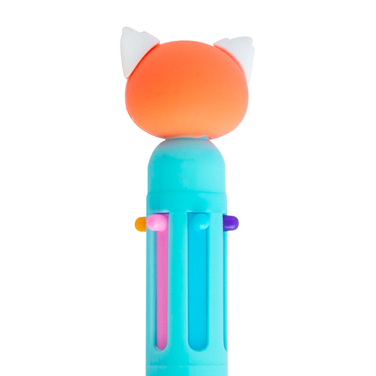 Caneta multicolorida, com um panda vermelho do Sr. Maravilhoso em uma ponta. Possui 6 cores de tinta diferentes: azul escuro, azul claro, verde, laranja, lilás e rosa.