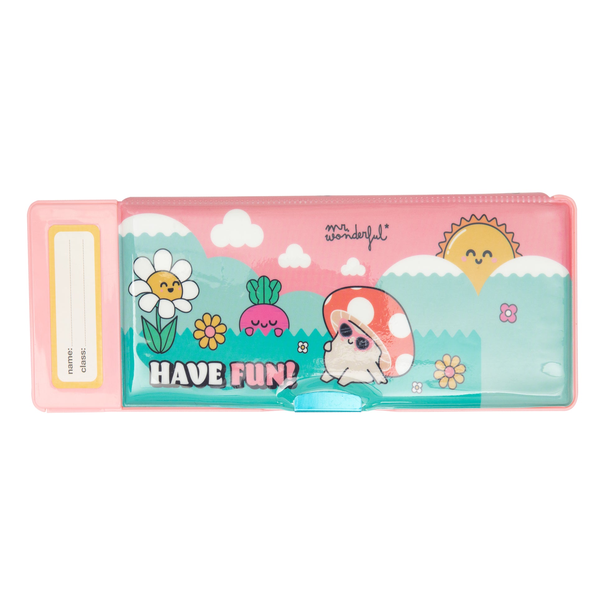 Encha seus dias de diversão com este estojo original cheio de botões divertidos e compartimentos práticos.