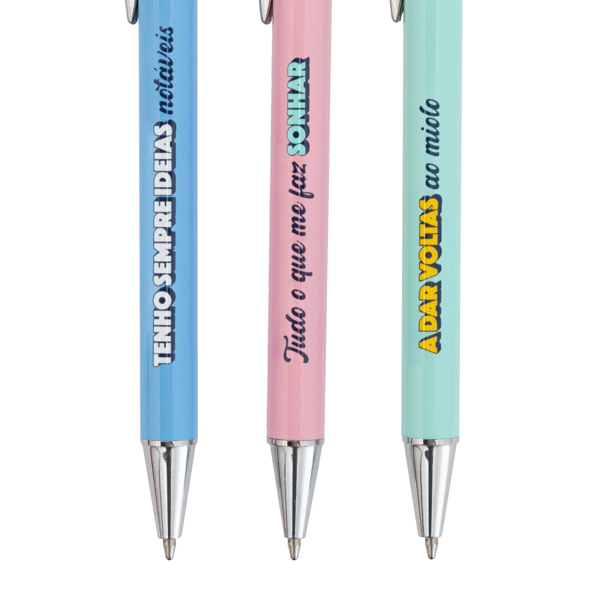 Pacote com 3 canetas para mirar o futuro e realizar seus sonhos.