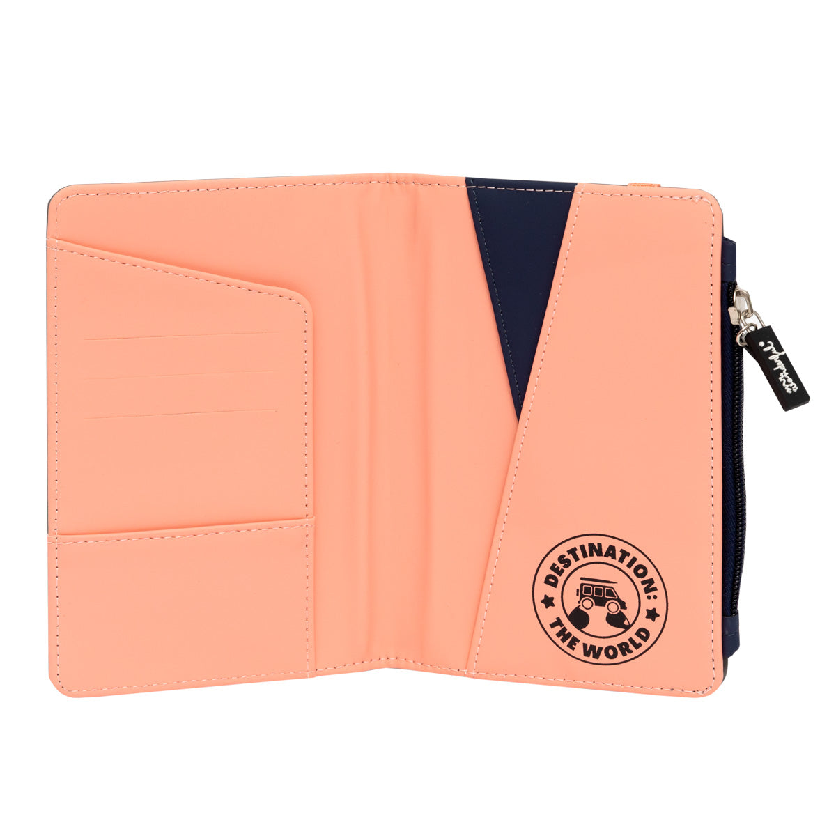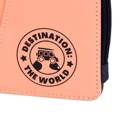 Capa para passaporte feita em PU, com mensagem do viajante, ideal para proteger seu documento durante viagens.