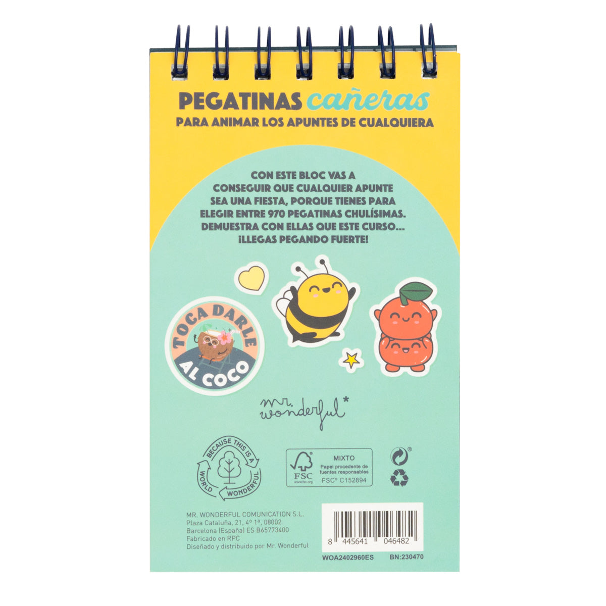 Caderno com espiral e nada menos que 1.000 adesivos dentro. Com um total de 36 folhas de adesivos de diferentes tipos: