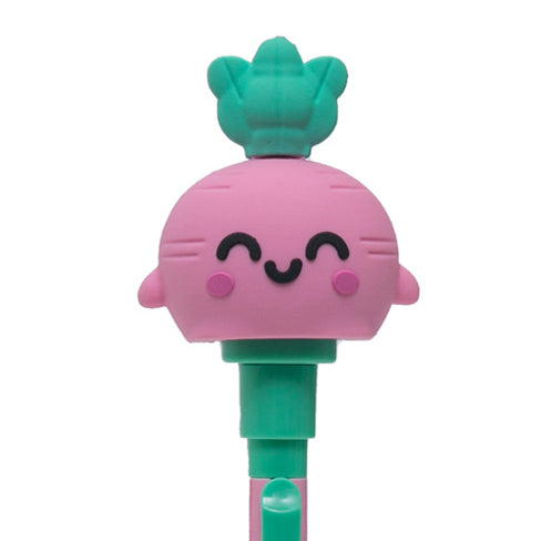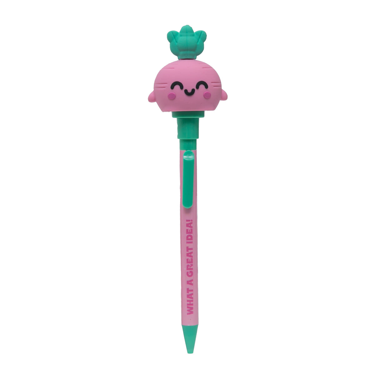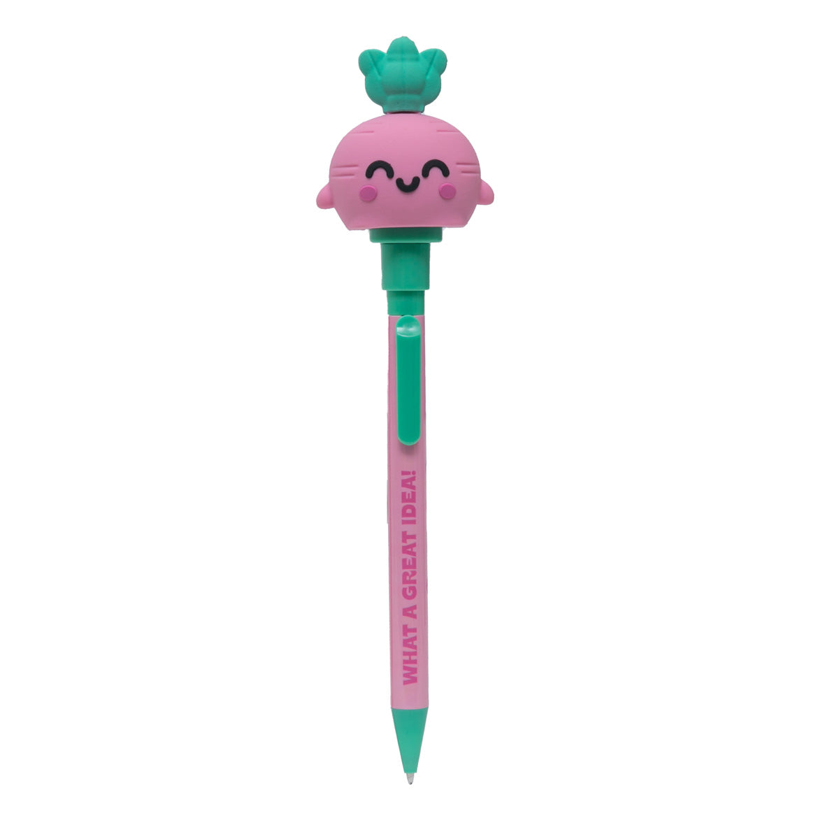 Caneta de plástico com nossa beterraba Mr. Wonderful na ponta, que se move para cima e para baixo quando você abre e fecha a caneta. Cor da tinta: preta.
