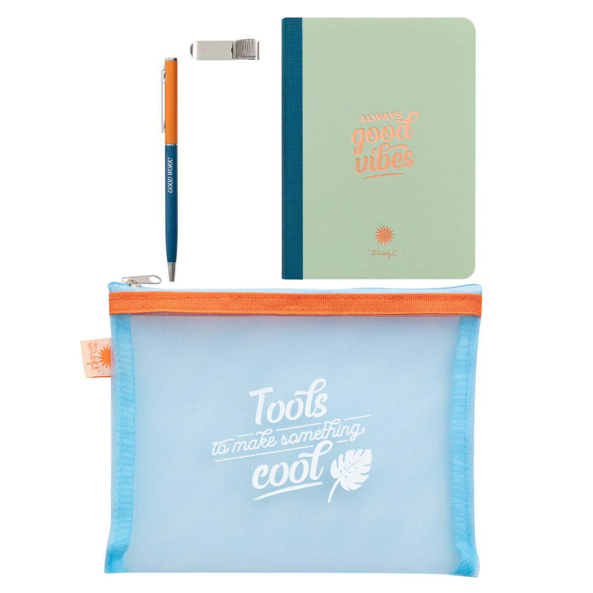 Estojo + caderno + caneta - Ferramentas para fazer algo giro