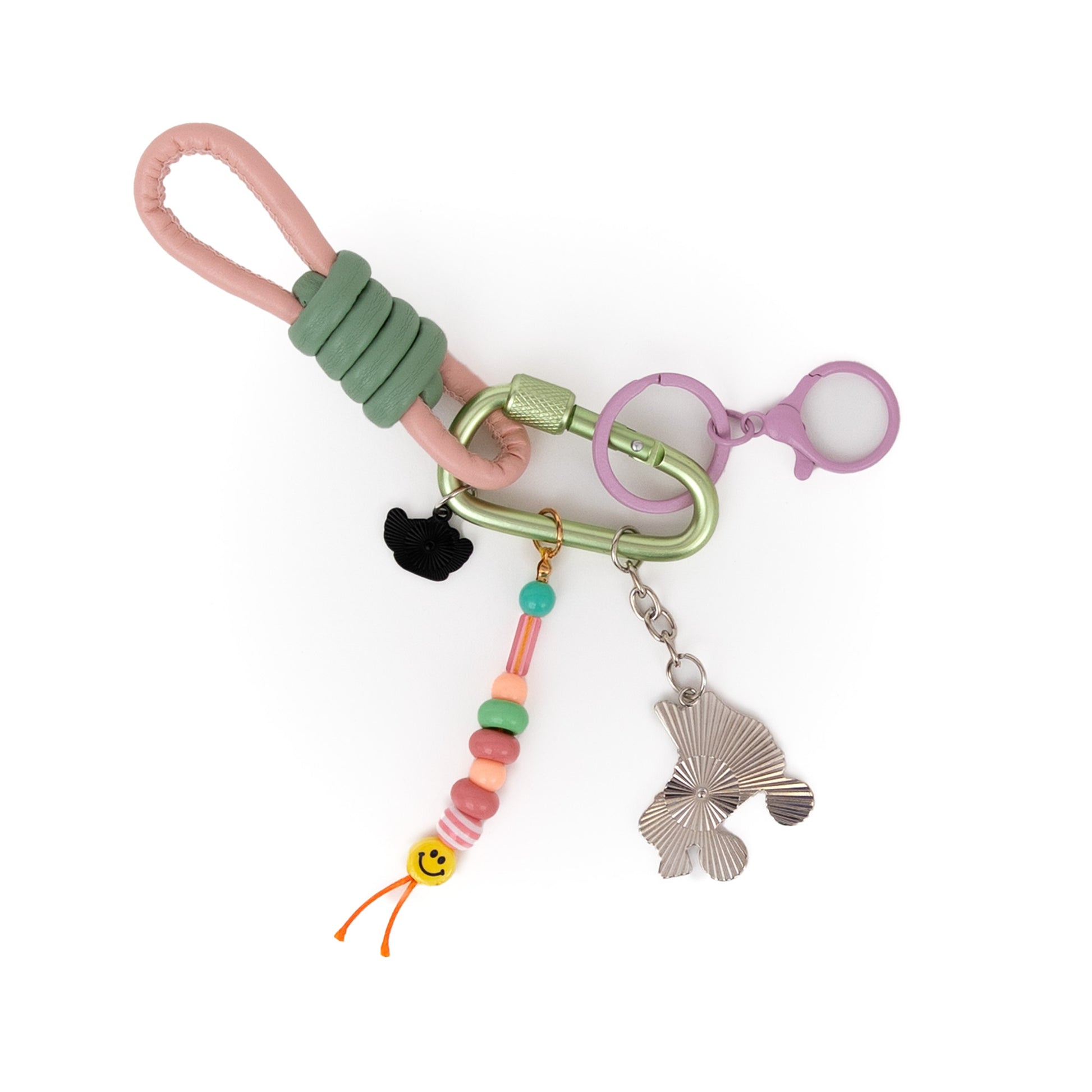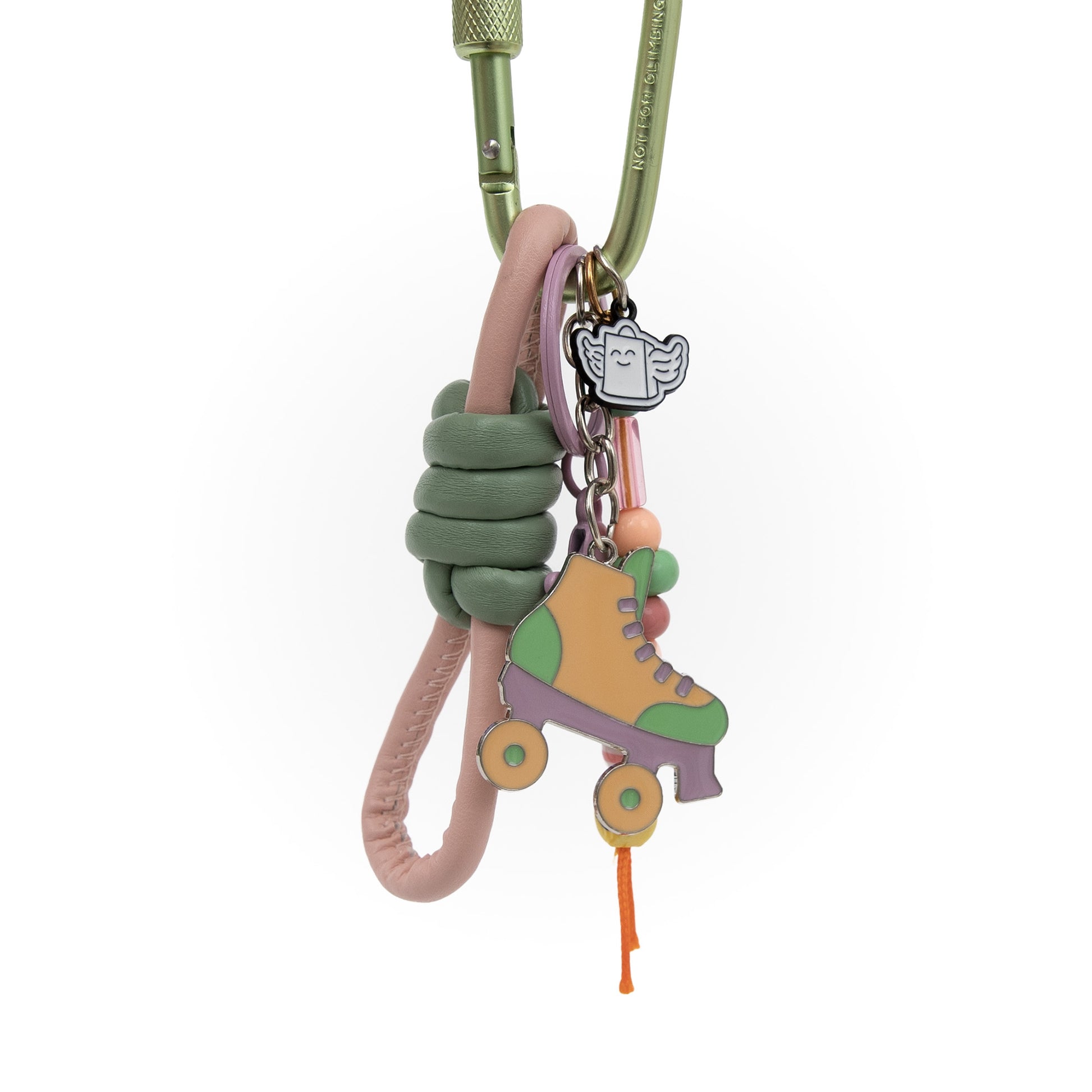 Decoração pendente para prender em malas ou mochilas, dá um toque moderno. Tem um clipe tipo mosquetão e um patim de rodas divertido como enfeite.