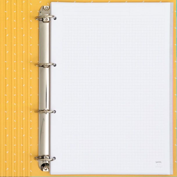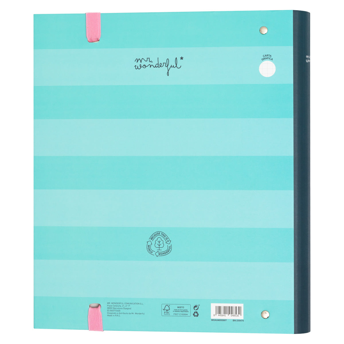 Raccoglitore com 4 argolas, cintura elástica e proteção anti-graffiti na capa. Com uma divertida mensagem em espanhol. Inclui um quadrettati fogli de substituição (120 fogli).