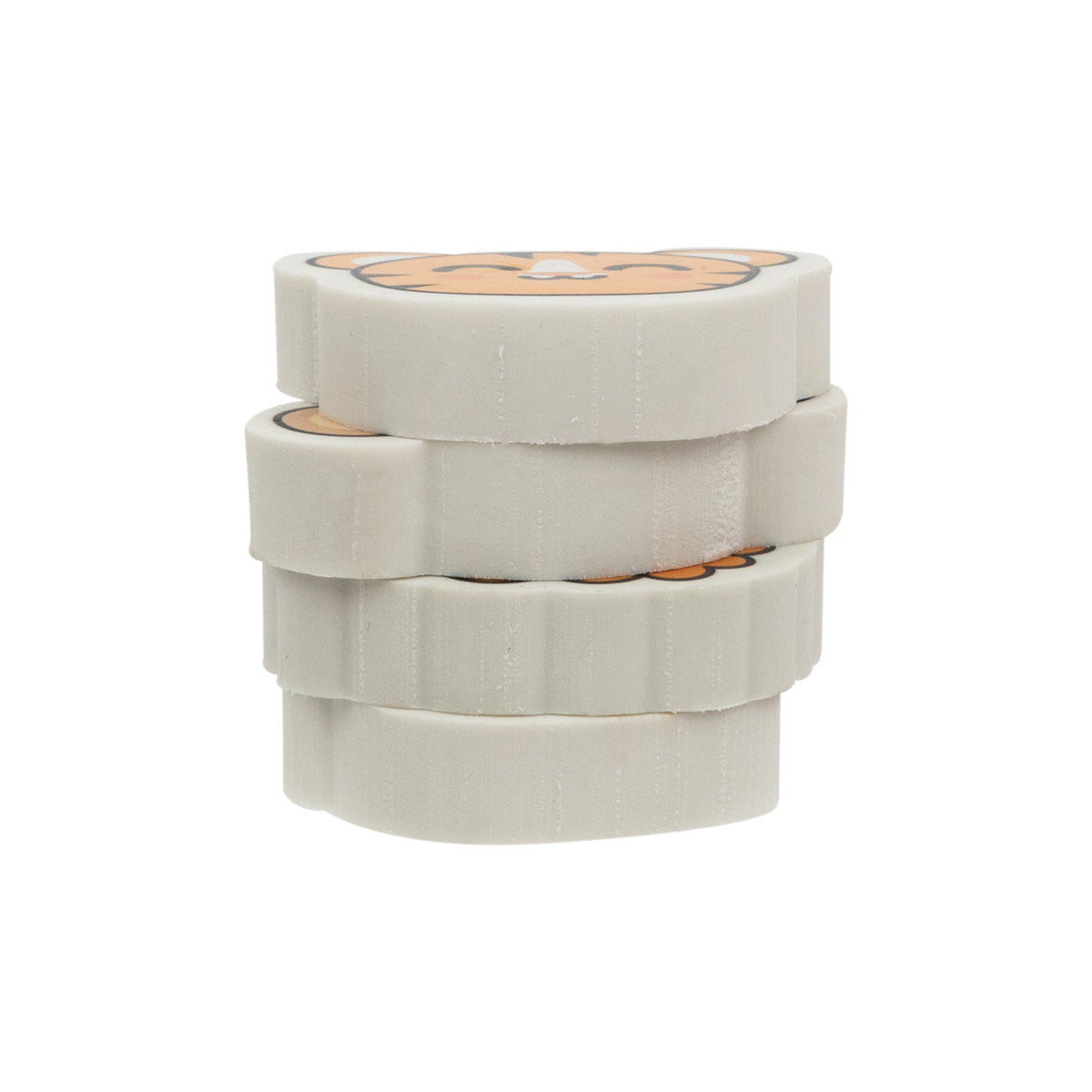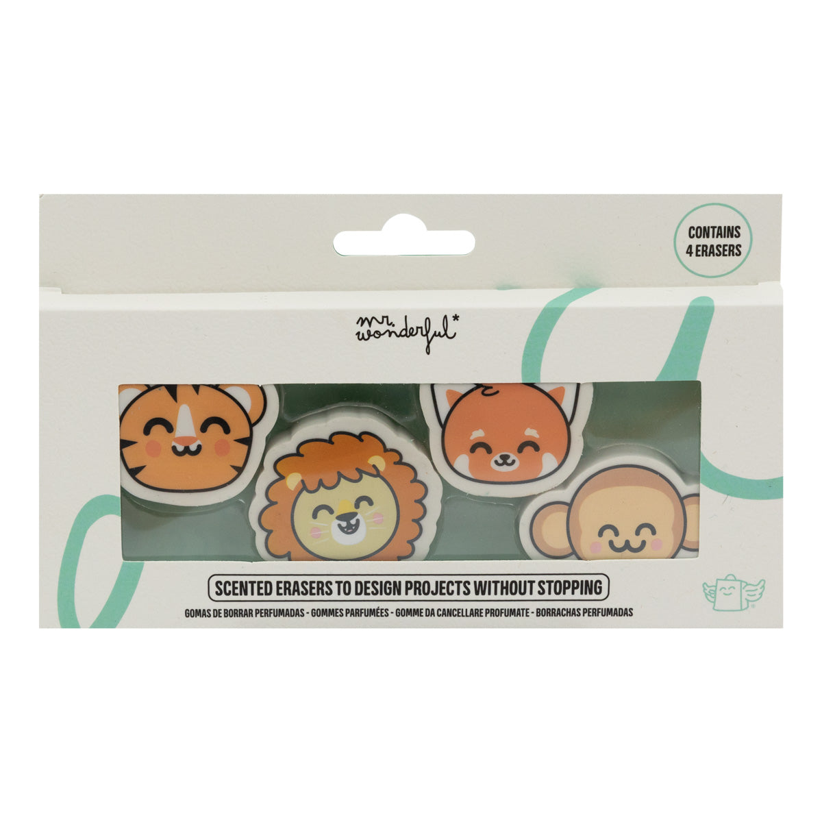 Conjunto de 4 borrachas perfumadas, com aroma a morango.