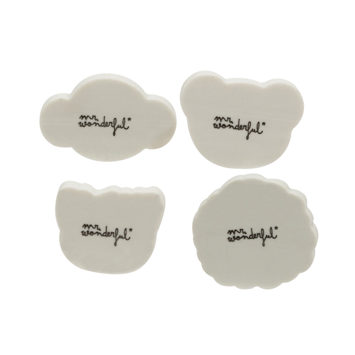 Cada um tem a forma de uma das personagens que se encontram nas nossas canetas apagáveis Bo-Bo: Philip, o tigre, Simon, o leão, Wondo, o panda vermelho, e Bono, o macaco.
