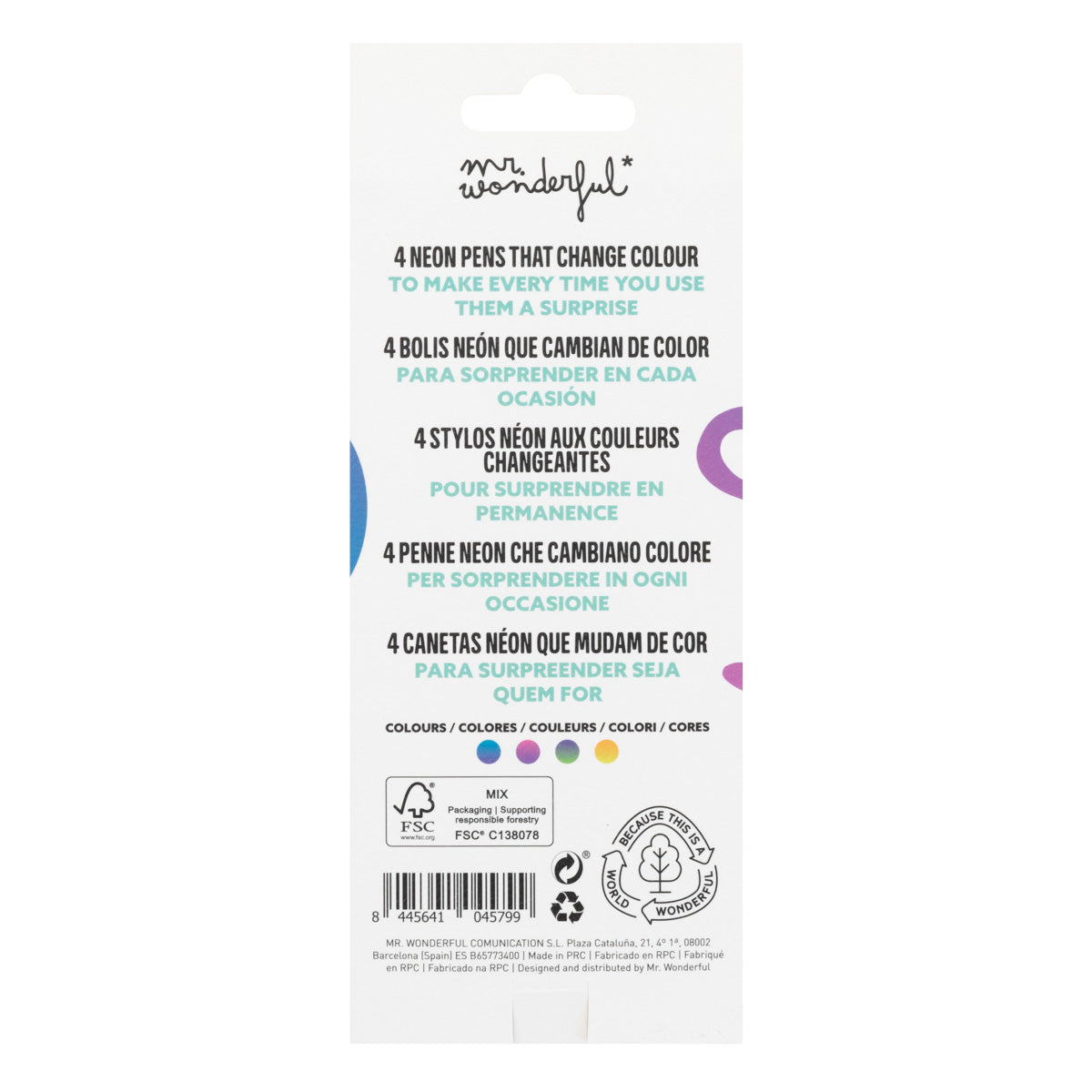 Conjunto de 4 canetas neon multicoloridas, que mudam de cor ao escrever.