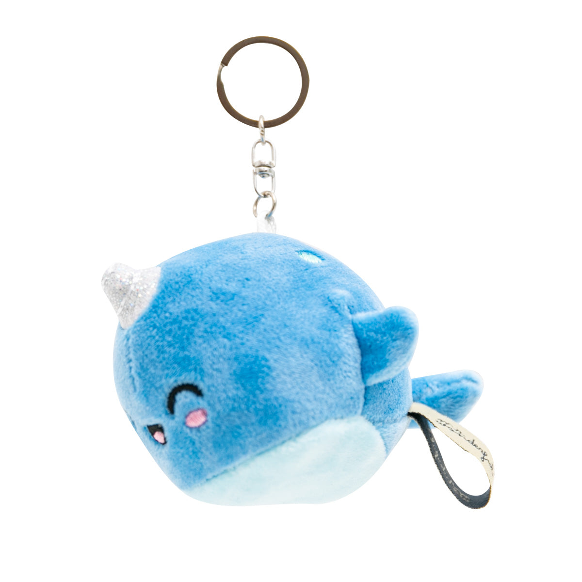 Pequeno chaveiro de pelúcia feito de poliéster, com o nosso narval Mr. Wonderful.