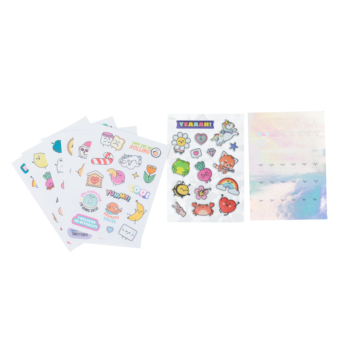 Contém 6 folhas de autocolantes comuns, 1 folha de autocolantes em relevo e 1 folha de autocolantes holográficos.
